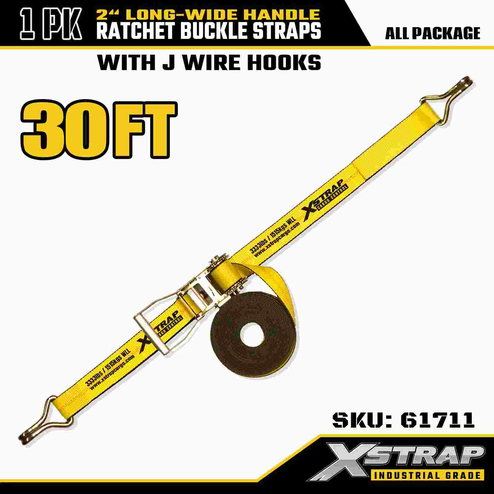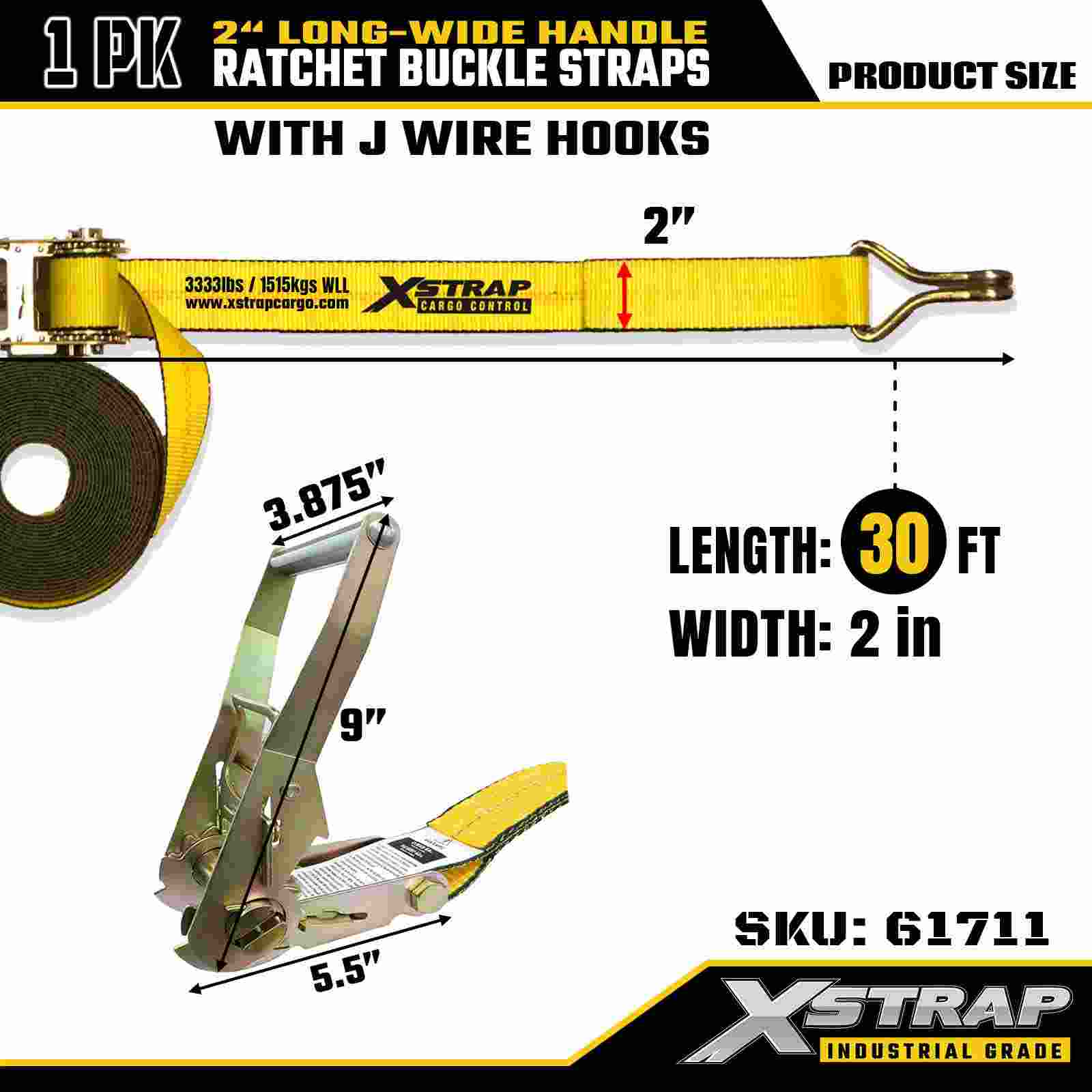 Xstrap 61711 Prémiové popruhy s ráčnou 2" x 30 stop (1 balení) s drátěnými háčky, pevnost v přetržení 10 000 lb, těžké uvazování pro náročnou přepravu