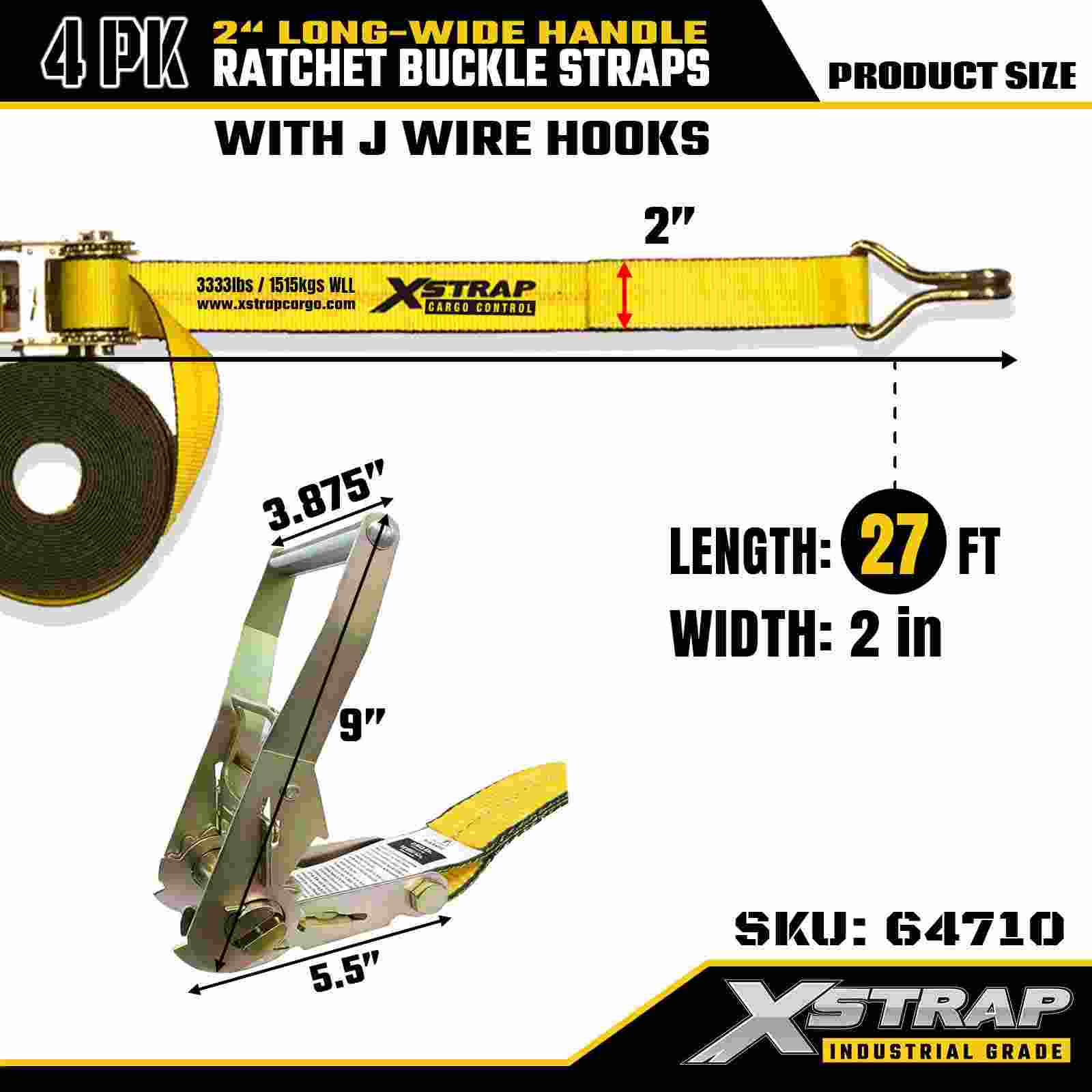 Xstrap 64710 ráčnové popruhy pro ovládání nákladu 2" x 27 stop (4-balení) – drátěné háky, jmenovitá kapacita 10 000 liber, odolné uchycení pro přepravu zařízení