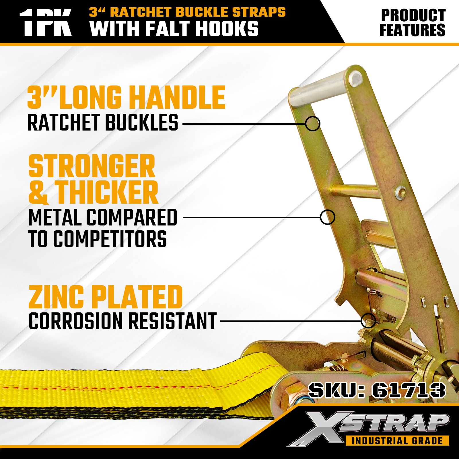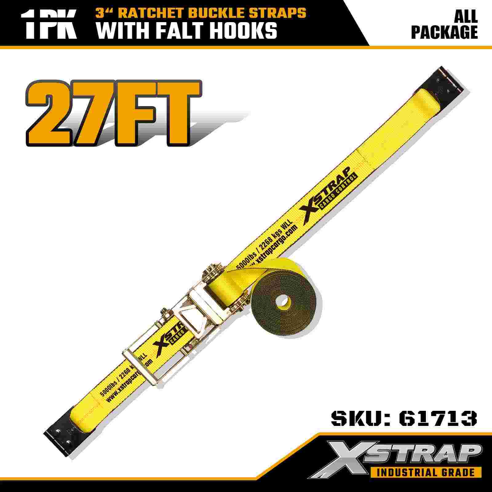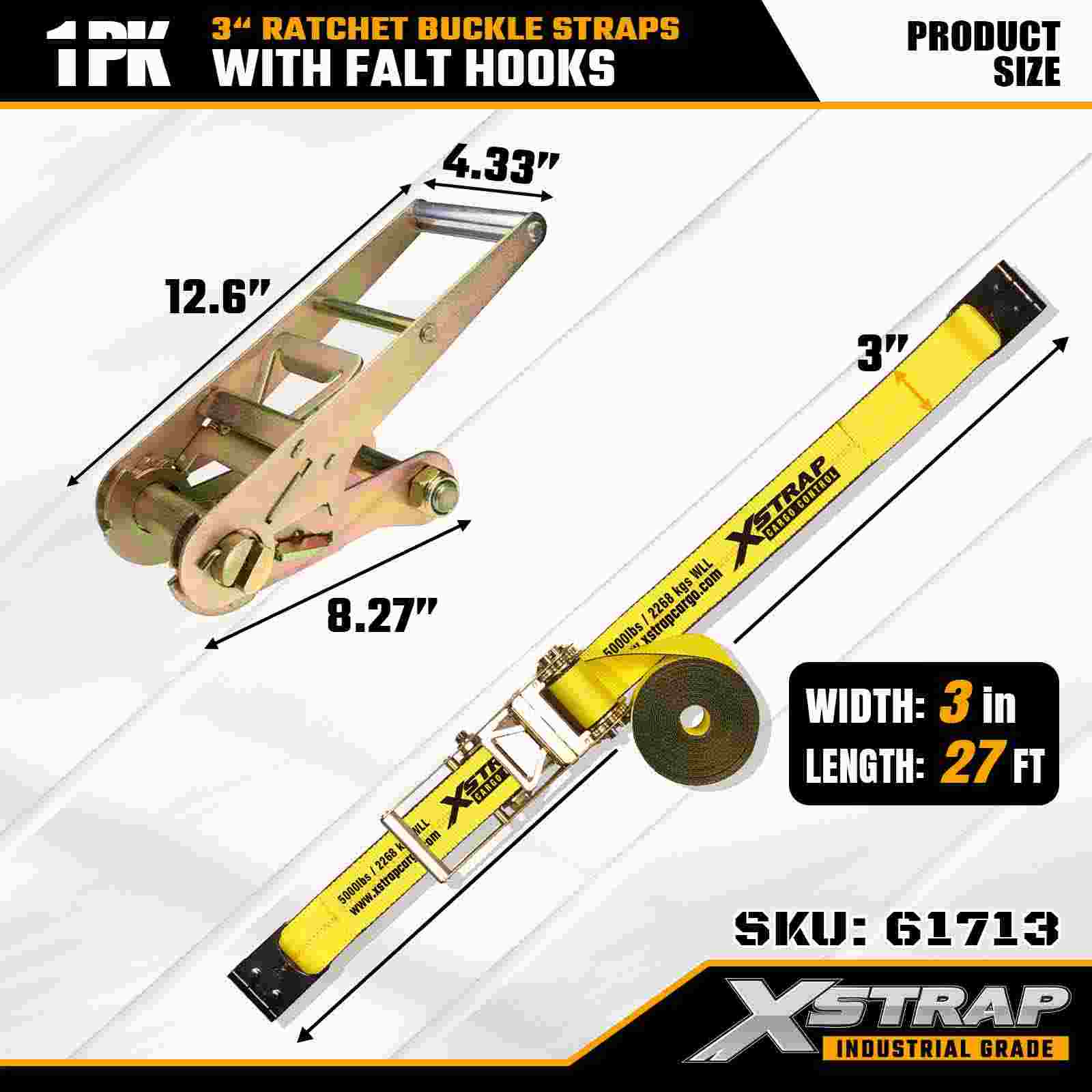 Xstrap 61713 3" x 27 stop popruhy s ráčnovou přezkou (1 balení) ploché háky, nosnost 5 000 liber, pevnost v přetržení 15 000 liber, uchycení pro velké zatížení pro nákladní automobily, přívěsy a průmyslovou nákladní dopravu.