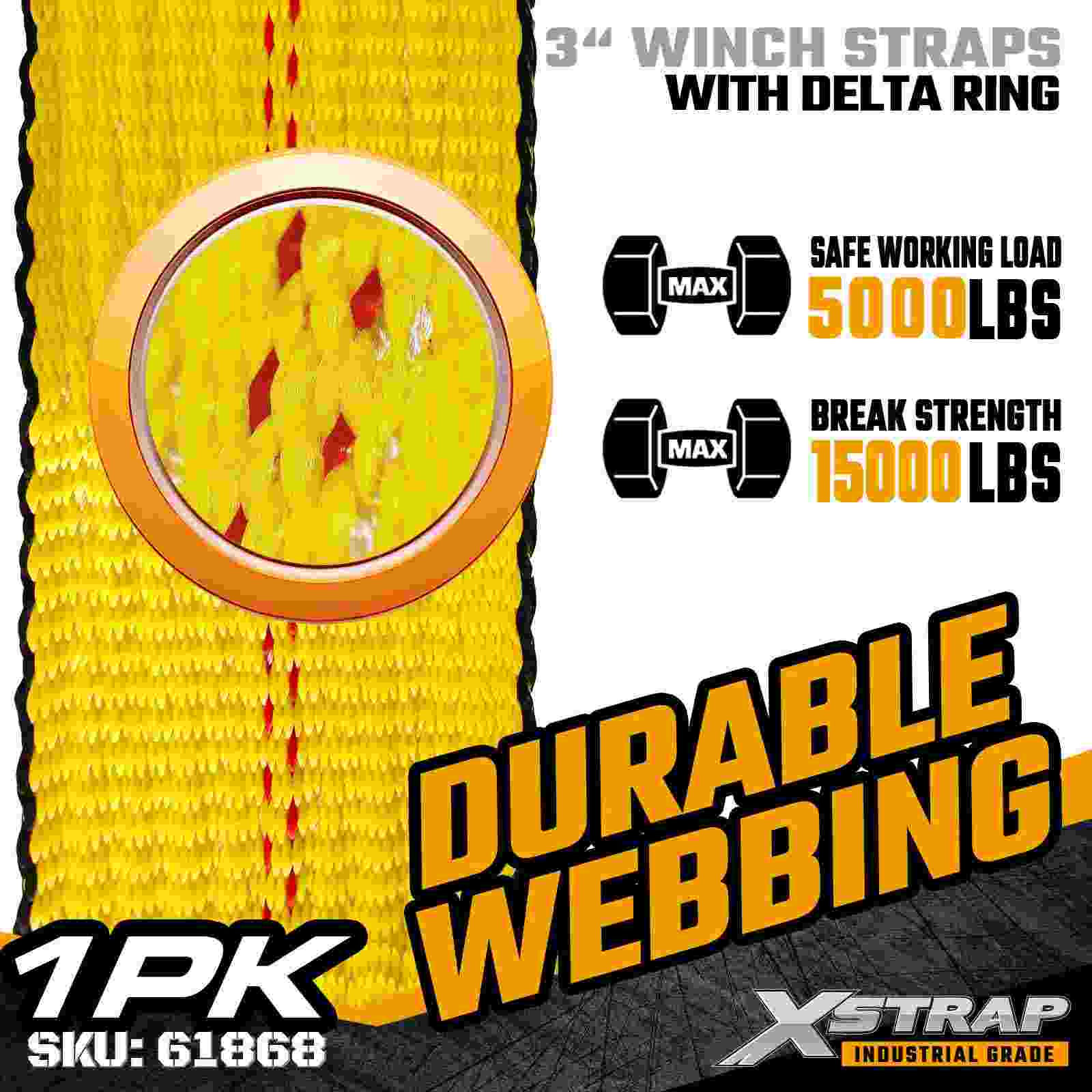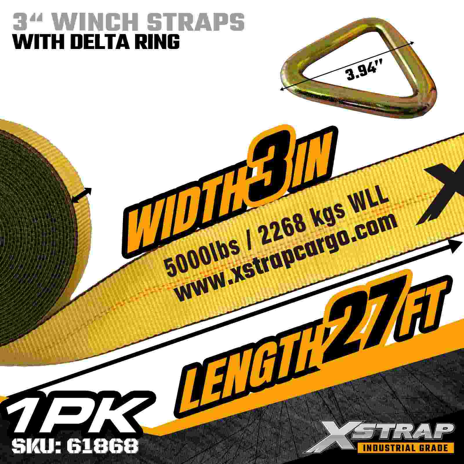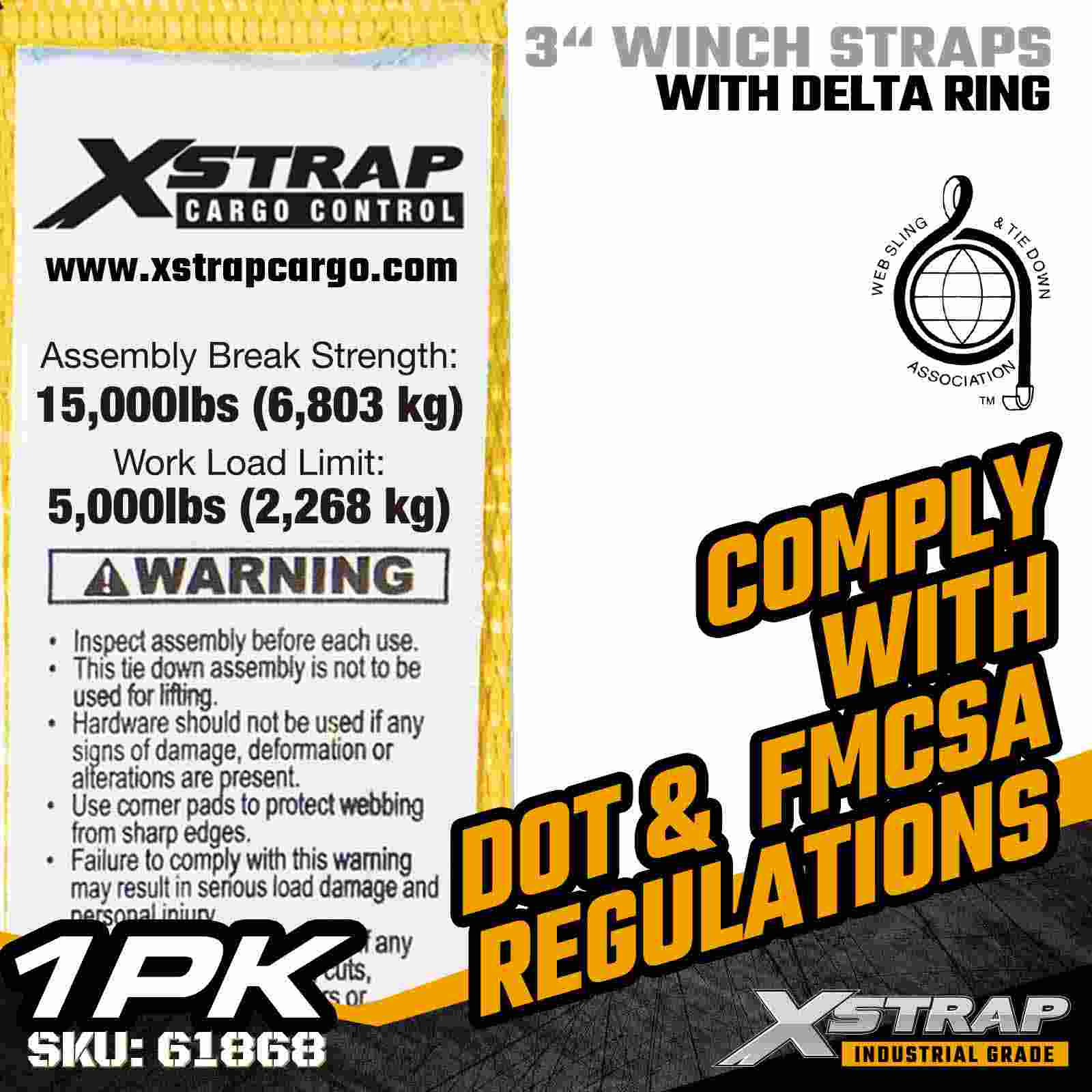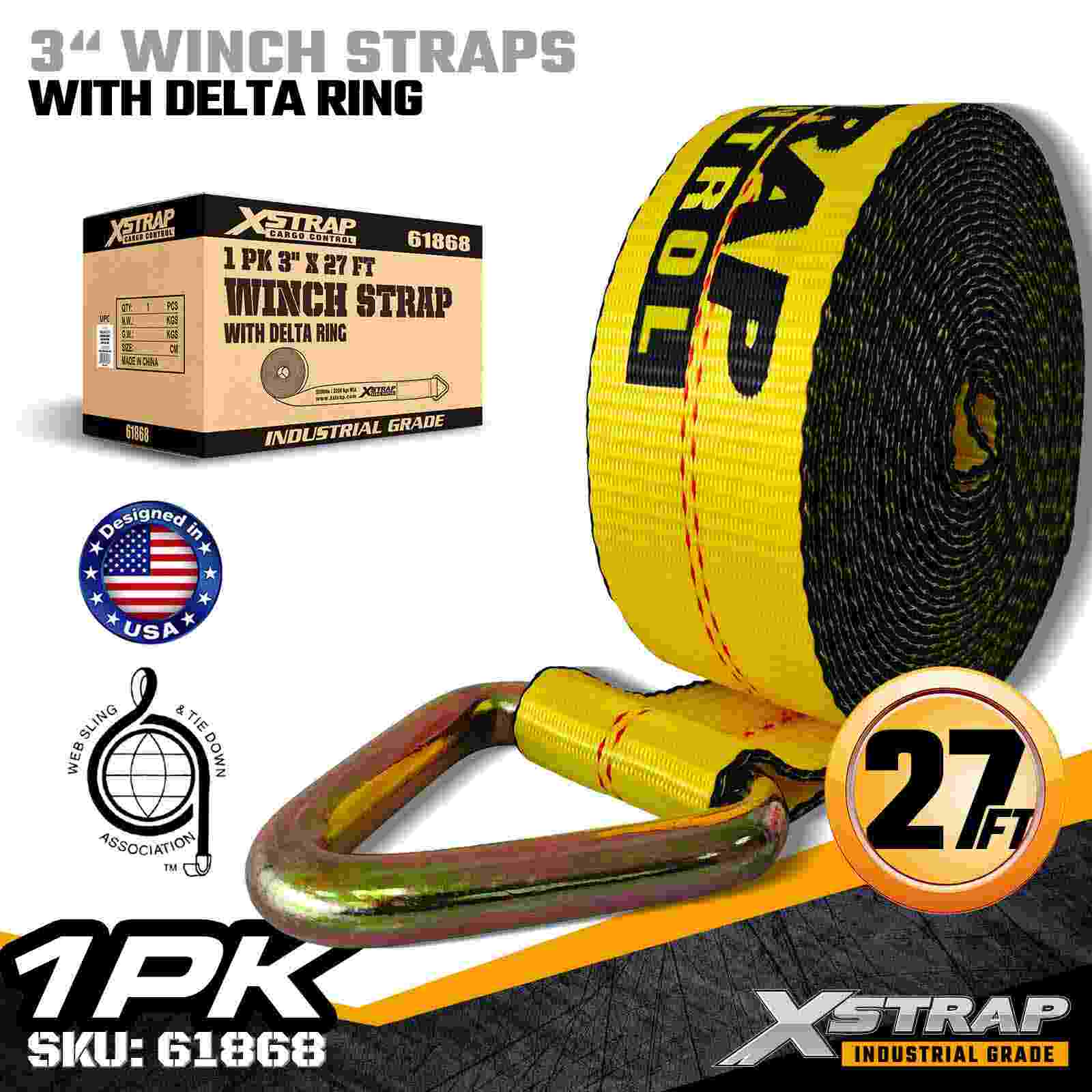 Standardní naviják Xstrap 61868 3" × 27 stop je řešení pro zabezpečení nákladu pro těžké zatížení určené pro valníkové přívěsy a vysokokapacitní přepravu. Tento 3palcový popruh na naviják je vybaven zesíleným prstencem Delta prsten a extra širokým 3palcovým polyesterovým popruhem, který poskytuje pracovní sílu 5 000 lb, maximální zatížení 00 l a maximální zatížení 15b. zajištění nadrozměrných nákladů, jako je řezivo, ocel, stroje a průmyslová přeprava během náročných přepravních operací.