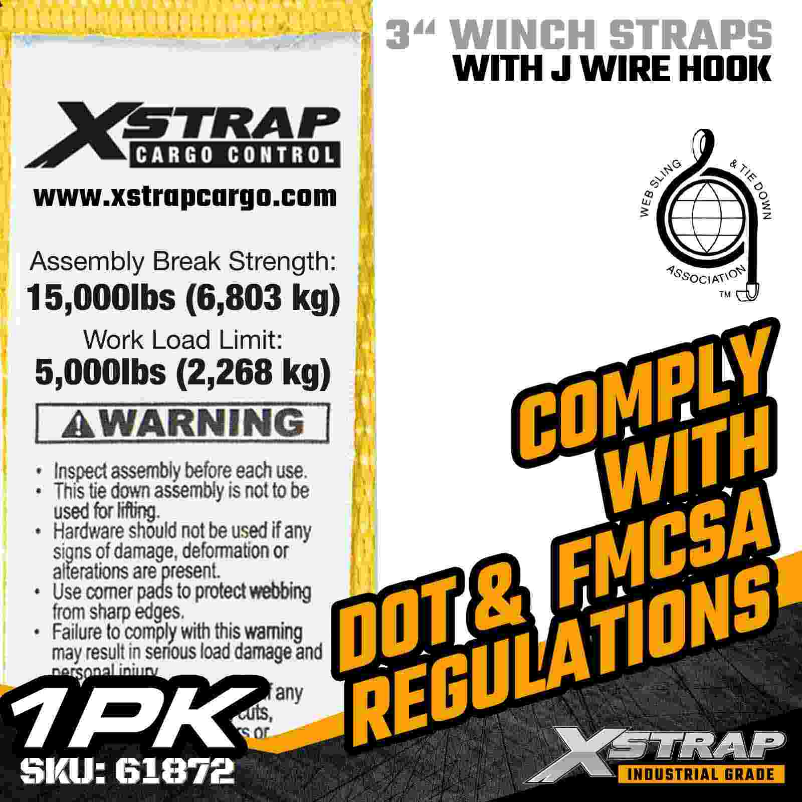 Standardní naviják Xstrap 61872 3" × 27 stop je řešení pro zabezpečení nákladu pro těžké zatížení určené pro valníkové přívěsy a průmyslovou přepravu. Tento 3palcový popruh na naviják je vybaven zesíleným drátěným hákem a extra širokým 3palcovým polyesterovým popruhem a poskytuje 5 000 lbs Working Load Limit0 Wi0re Hooklbs a flexibilní design Brexer Hook.0 možnosti, díky čemuž je ideální pro operátory, kteří potřebují rychlé a všestranné přípojné body během každodenních přepravních operací.