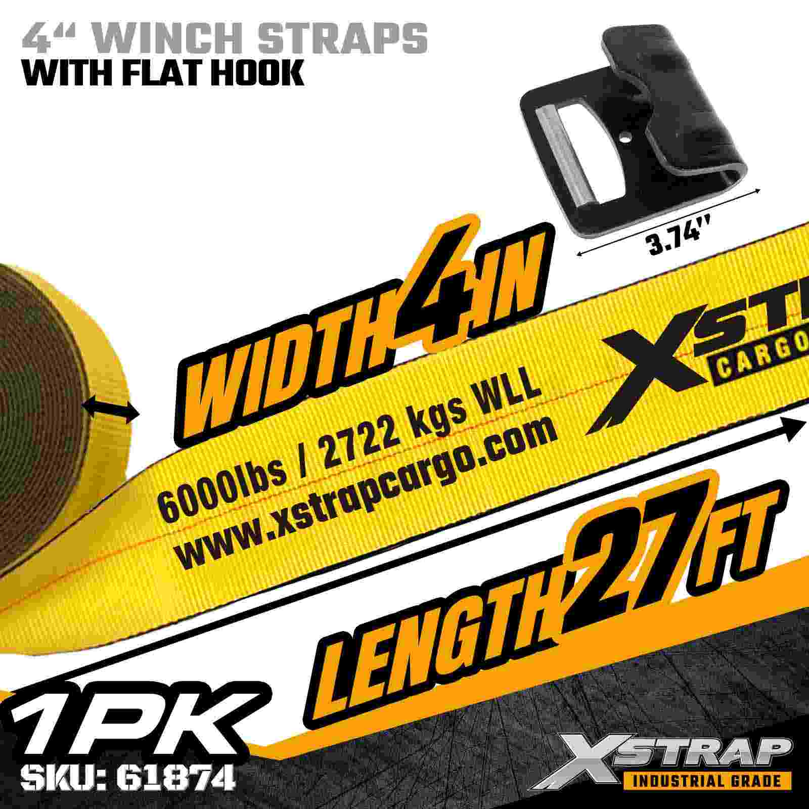Standardní popruh na naviják Xstrap 61874 4" × 27 stop je odolný a vysokokapacitní popruh pro zajištění nákladu navržený pro valníkové přívěsy a průmyslovou přepravu. Tento 4palcový popruh na naviják se zesíleným plochým hákem a extra širokým 4palcovým polyesterovým popruhem poskytuje 6 000 lb, pracovní zatížení širší 000 lb. popruhy poskytují vynikající rozložení nákladu, takže jsou ideální pro zajištění těžkého, objemného nebo choulostivého nákladu, který vyžaduje maximální stabilitu.