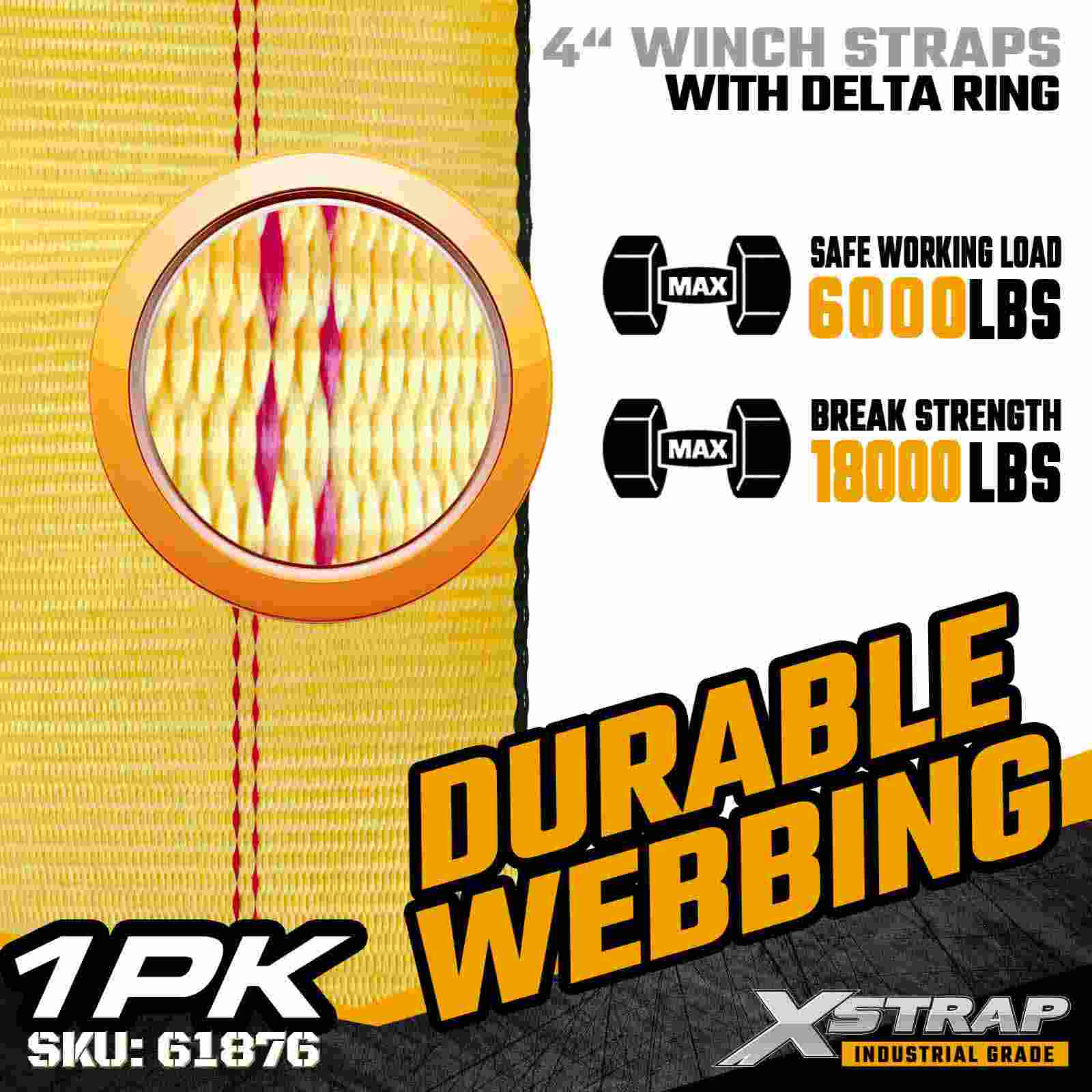 Standardní naviják Xstrap 61876 4" × 27 stop je prvotřídní popruh pro zajištění nákladu pro těžký náklad navržený pro valníkové přívěsy a průmyslovou přepravu. Tento 4palcový popruh na naviják je vybaven zesíleným prstencem Delta prsten a ultra širokým 4palcovým polyesterovým popruhem, který poskytuje pracovní zatížení 6 000 lb, pracovní zatížení 00000 Rngth. vícesměrný záběr nákladu, díky čemuž je ideální pro zajištění složitého nebo nerovného nákladu, který vyžaduje zvýšenou stabilitu a flexibilní ukotvení.