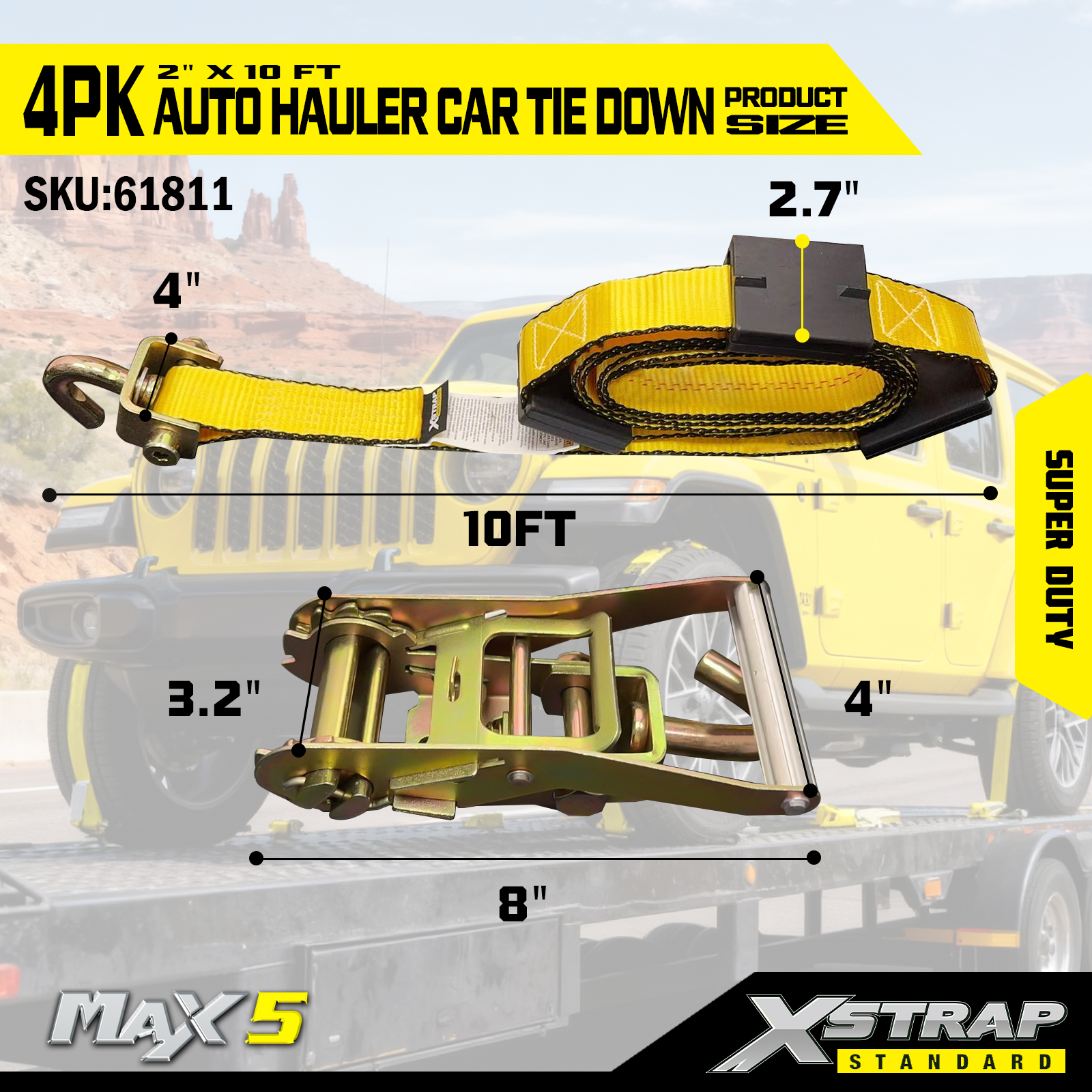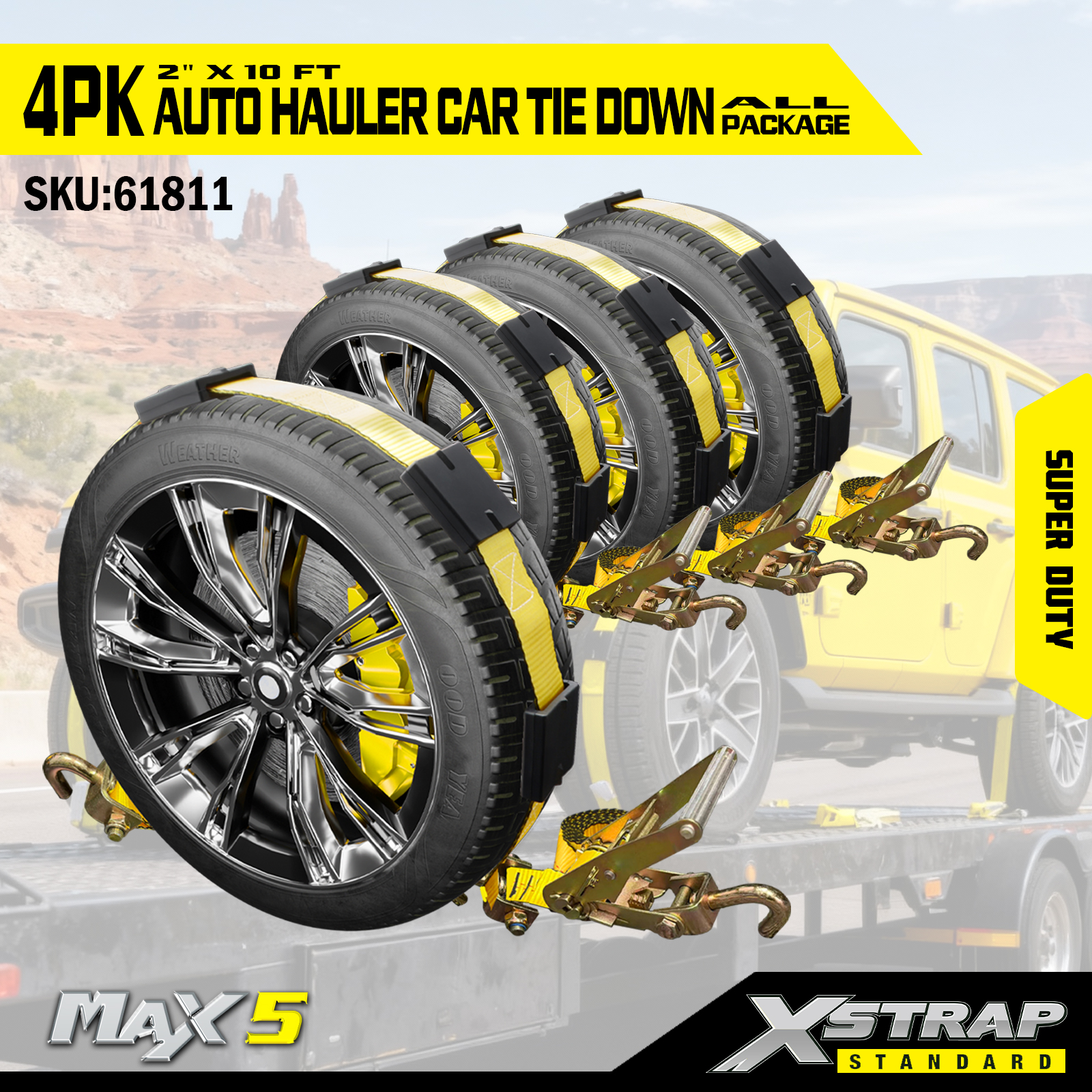 Xstrap Car Hauler Poppy Heavy Duty 6 600 lb Pevnost proti přetržení – Upevňovací popruhy pro přívěsy, přes kolo s gumovými příchytkami pro SUV, nákladní auta, ATV, UTV