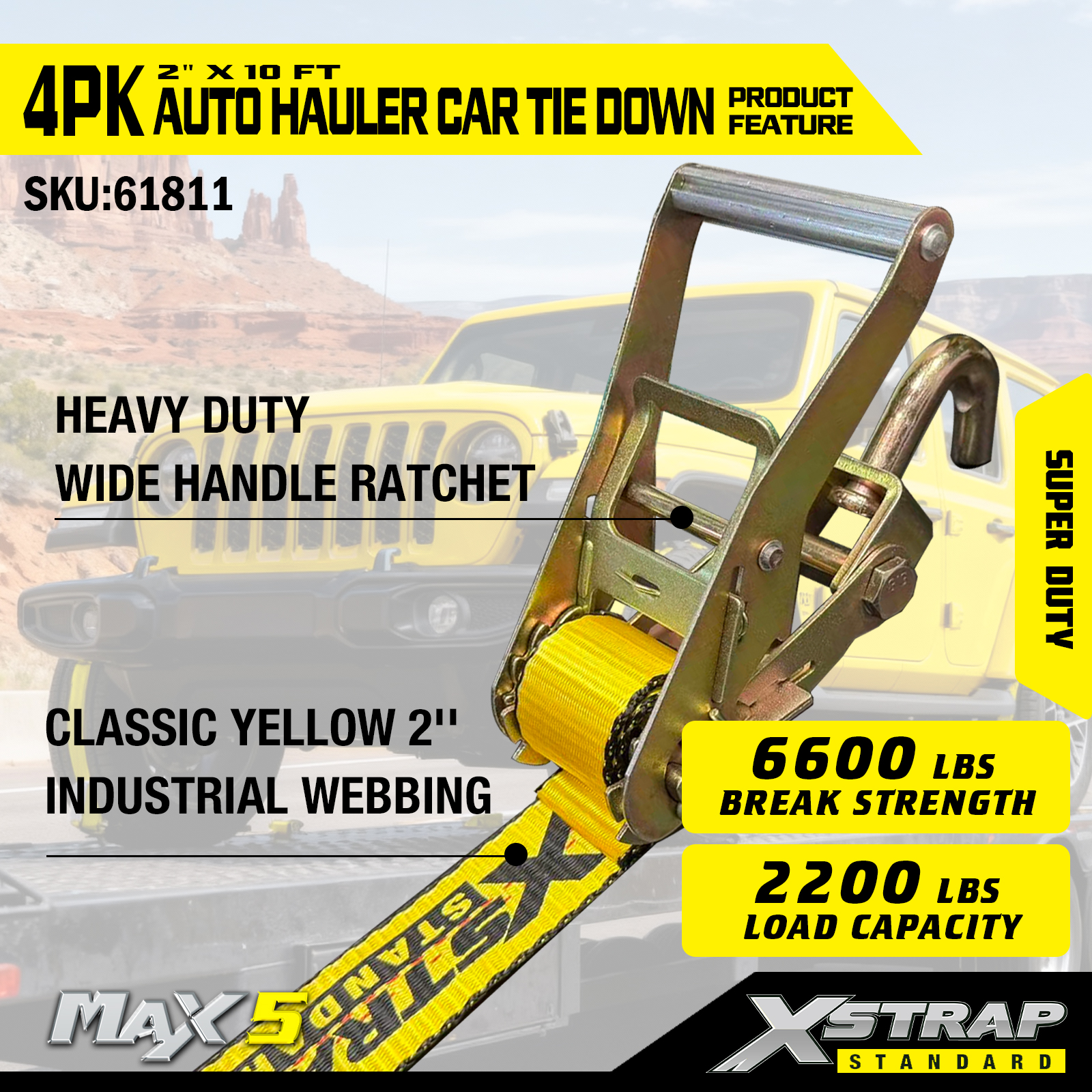 - Super Duty Performance: Každý popruh má bezpečnou pracovní zátěž 2 200 Bezpečná pracovní zátěž je vyražena na výstražném štítku každého upínacího popruhu pro snadnou kontrolu, je navržena tak, aby zvládla těžká vozidla a náročné přepravní scénáře.