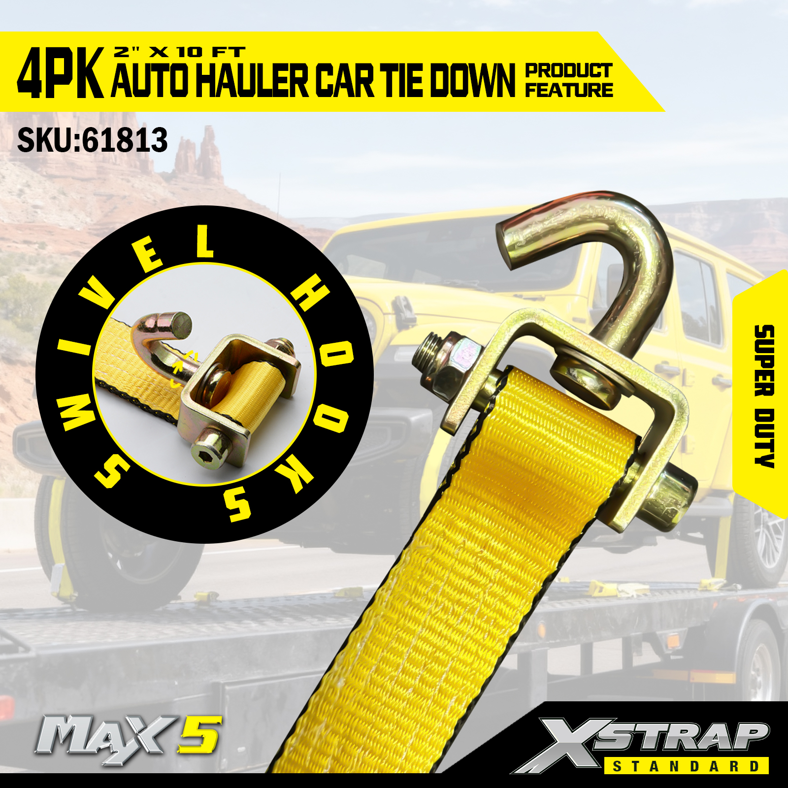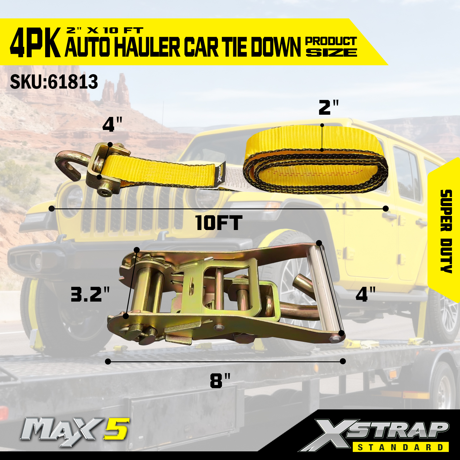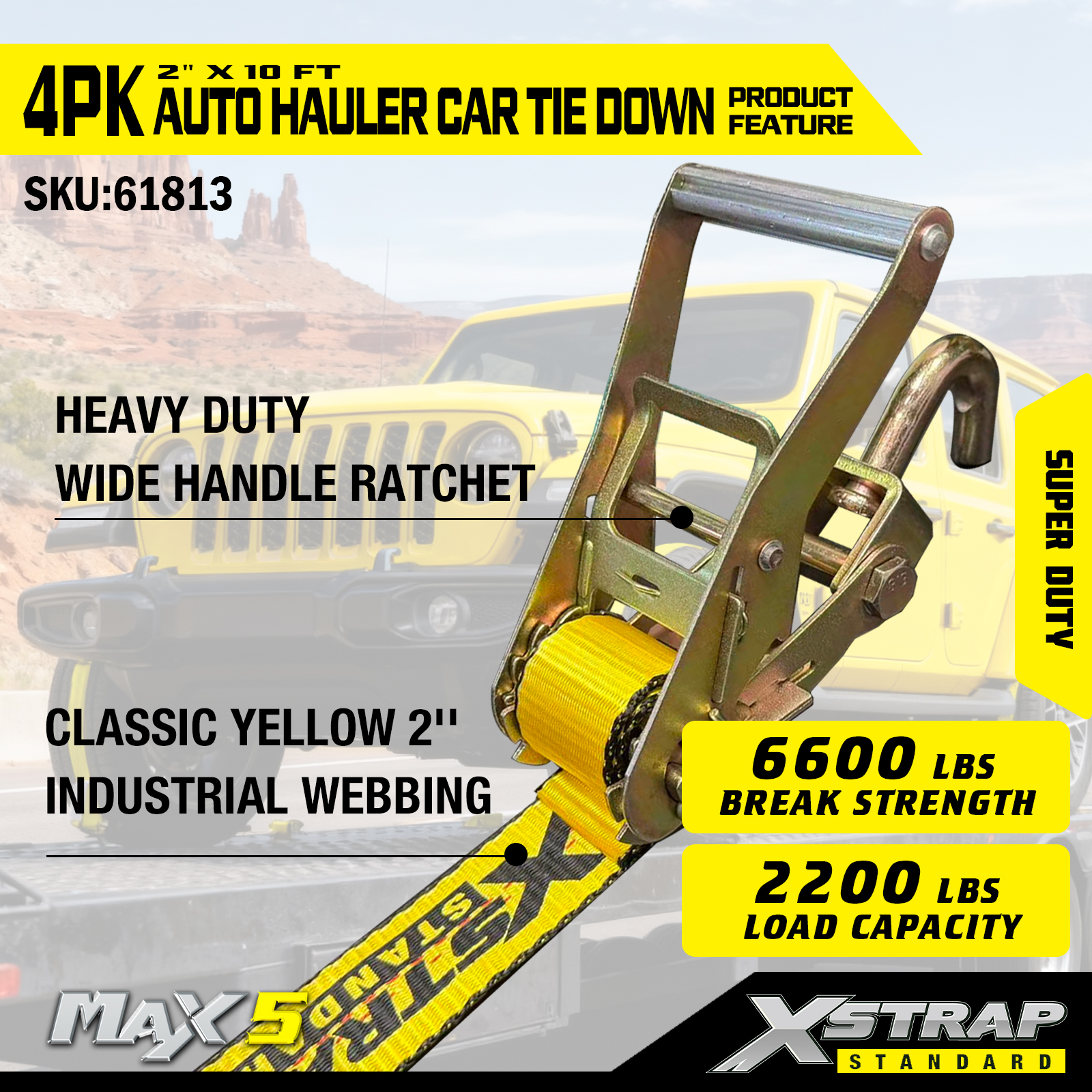- Nosnost Super Duty: Jmenovitá pro bezpečné pracovní zatížení 2 200 LBS a pevnost v lomu 6 600 LBS, zvládne těžká vozidla a náročné podmínky přepravy.
