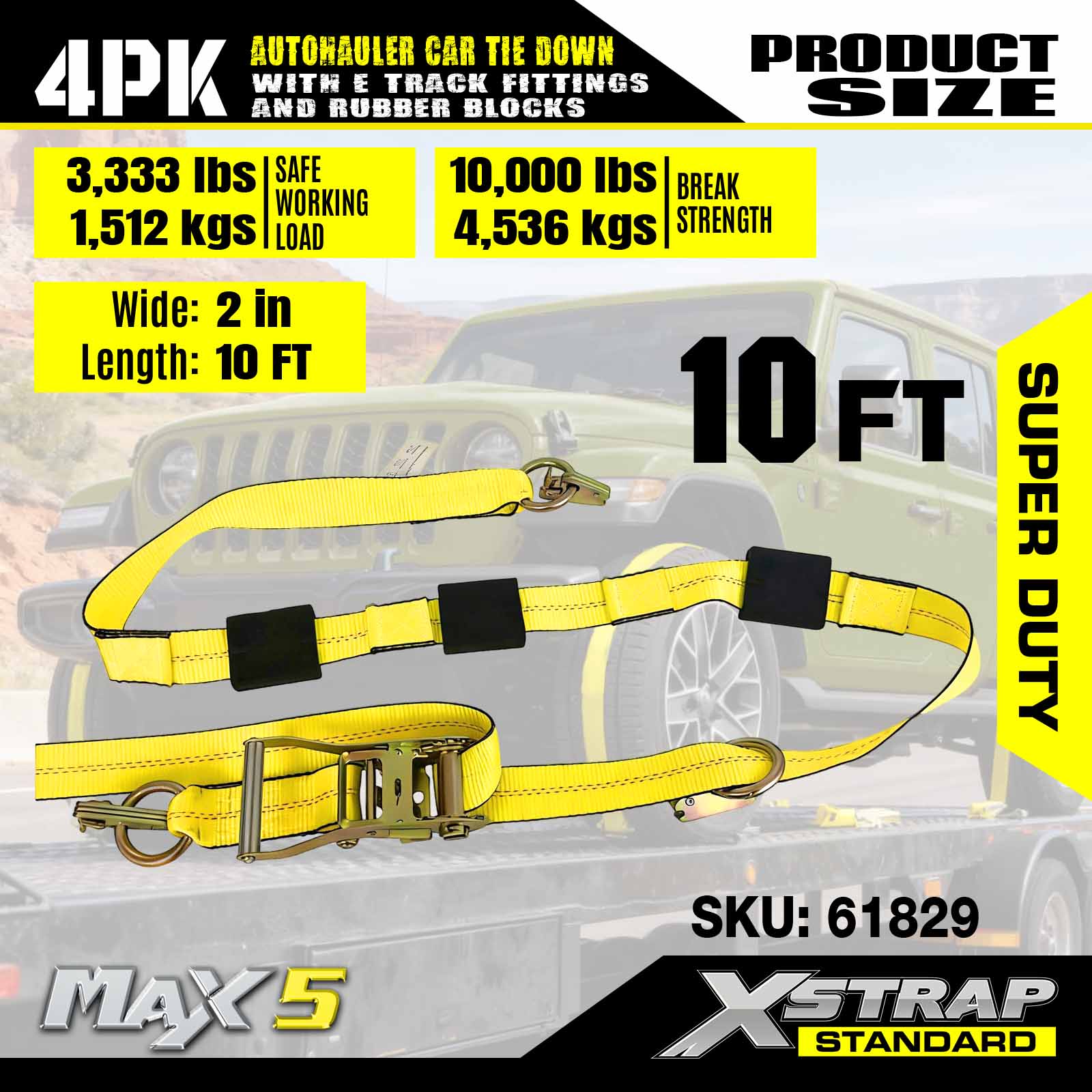 - Bezpečnost a všestrannost: Navrženy s limitem pracovního zatížení 3 333 lb a pevností v přetržení 10 000 lb, tyto popruhy splňují normy DOT a CVSA a poskytují bezkonkurenční bezpečnost pro vaše auta, čtyřkolky, UTV a závodní vozy na jakémkoli přívěsu.