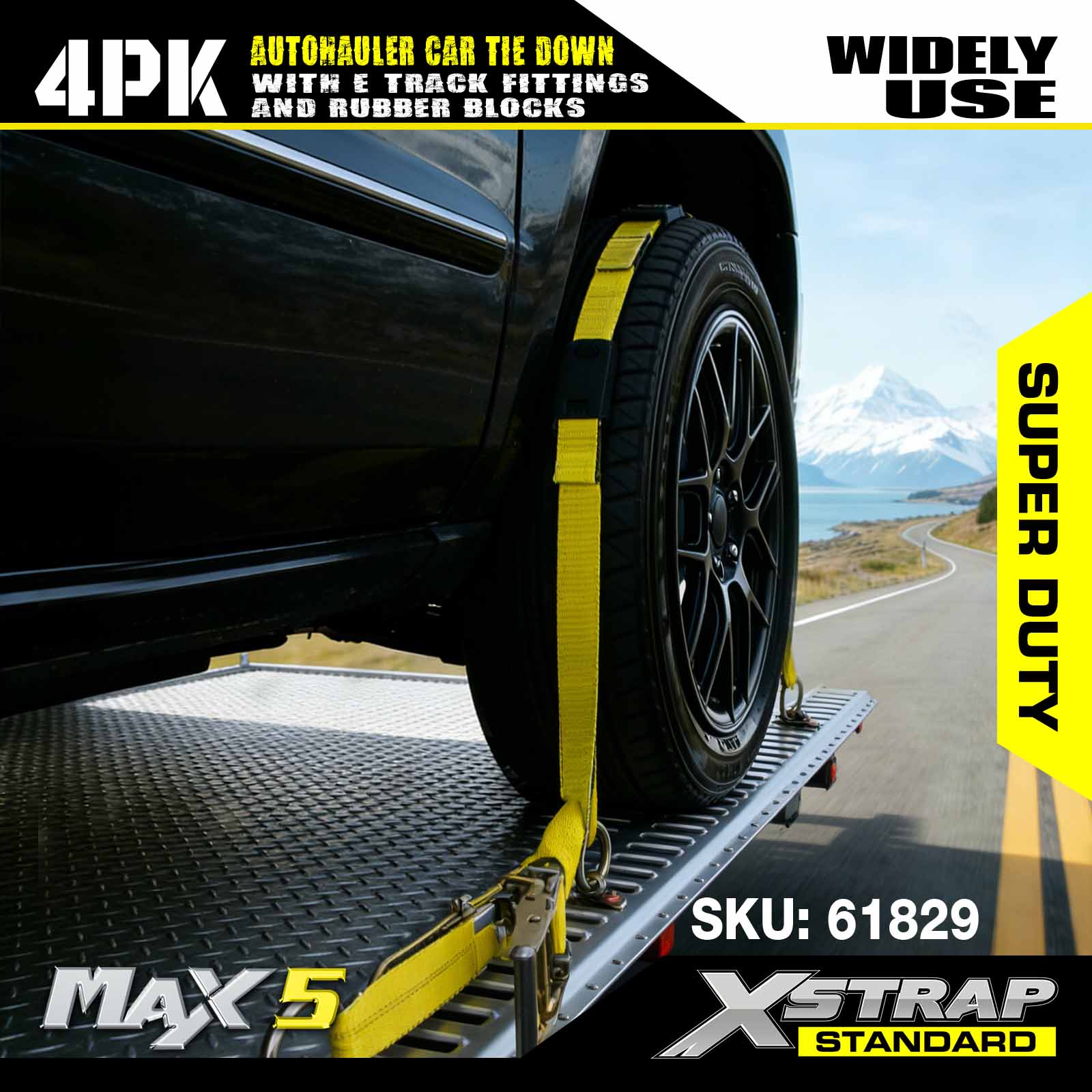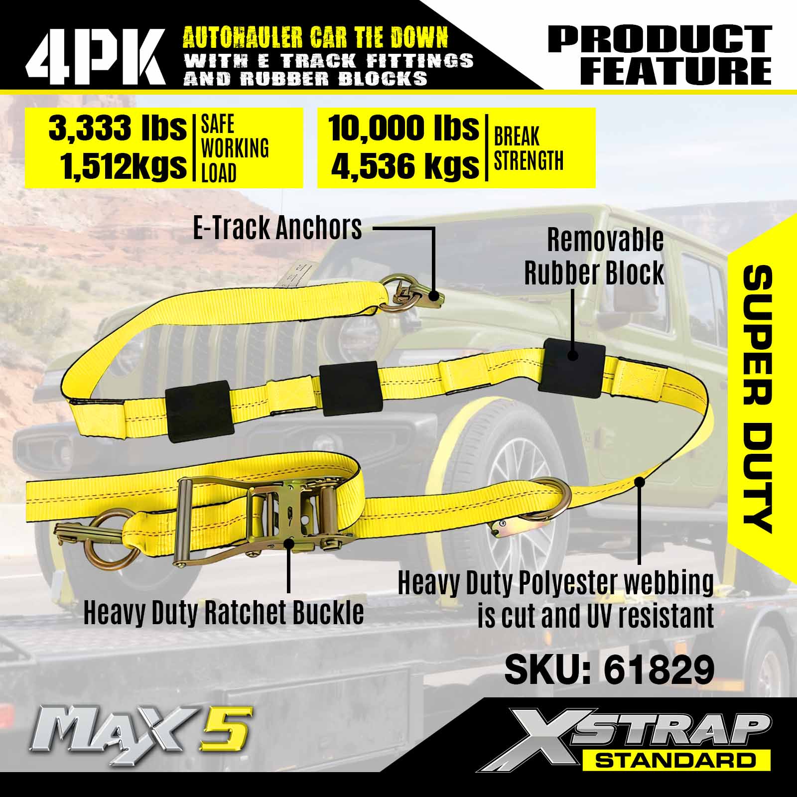 Pásky Xstrap E Track pro těžký návěs 2" x 10" Auto Hauler Popruh-10 000 lb Garantovaná pevnost (4) Prémiová sada pro uchycení vozidla s gumovými bloky Upevňovací prvky kol pro nákladní vozidlo, UTV