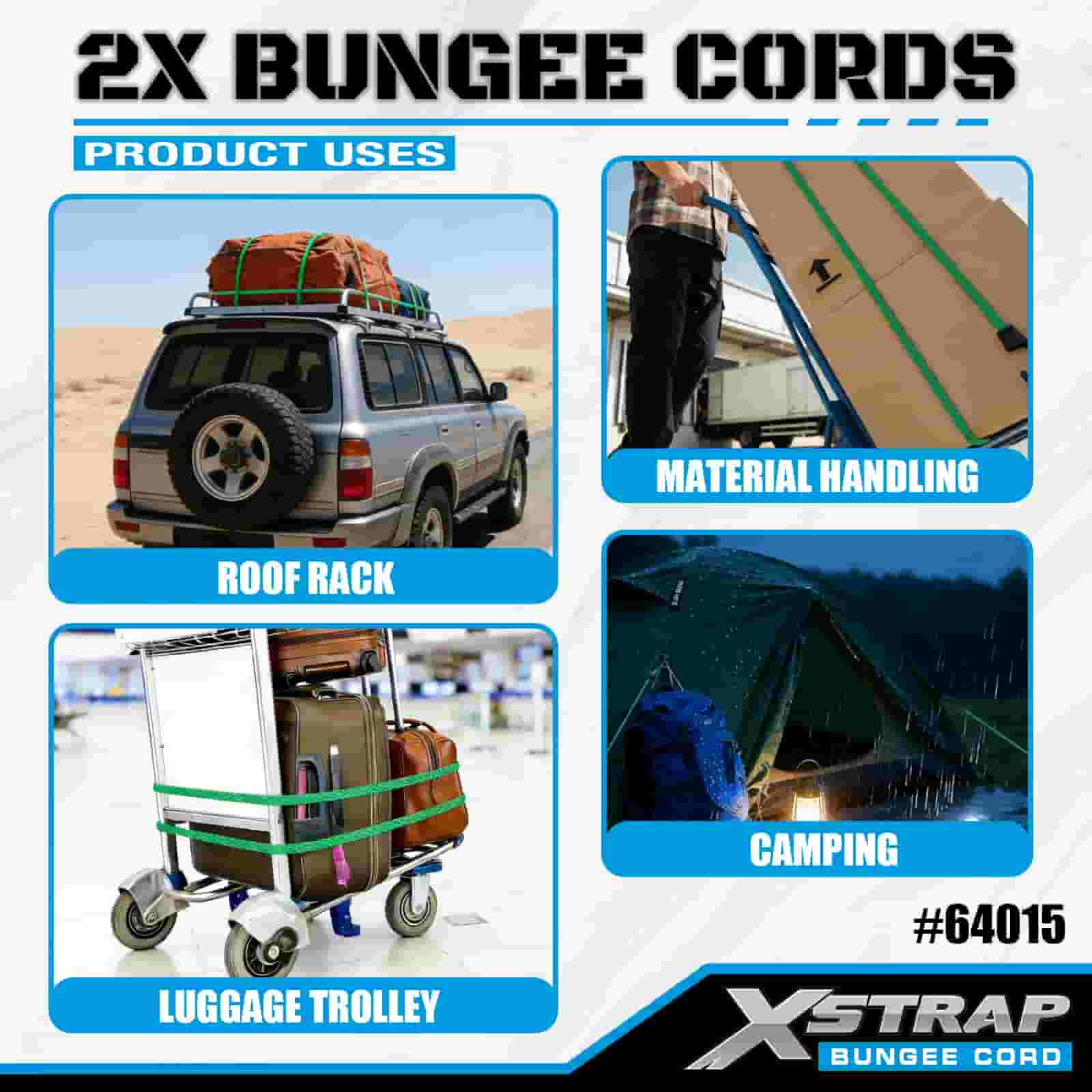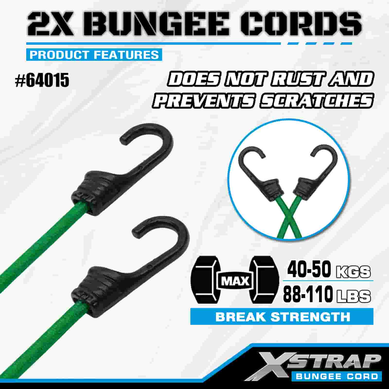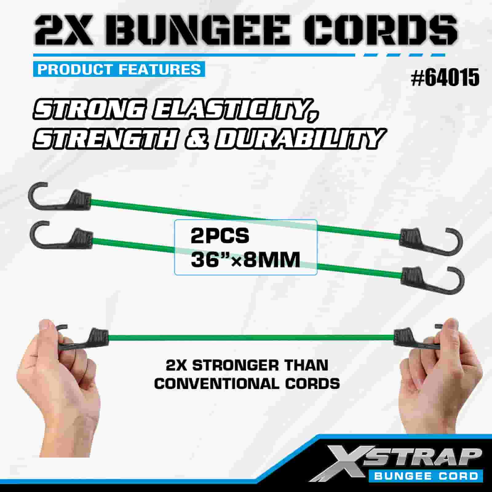 Xstrap 2PK 2X Bungee Cords 8mm x 36", 88-110 liber pevnost v přetržení se silnými háčky pro kontrolu nákladu.
