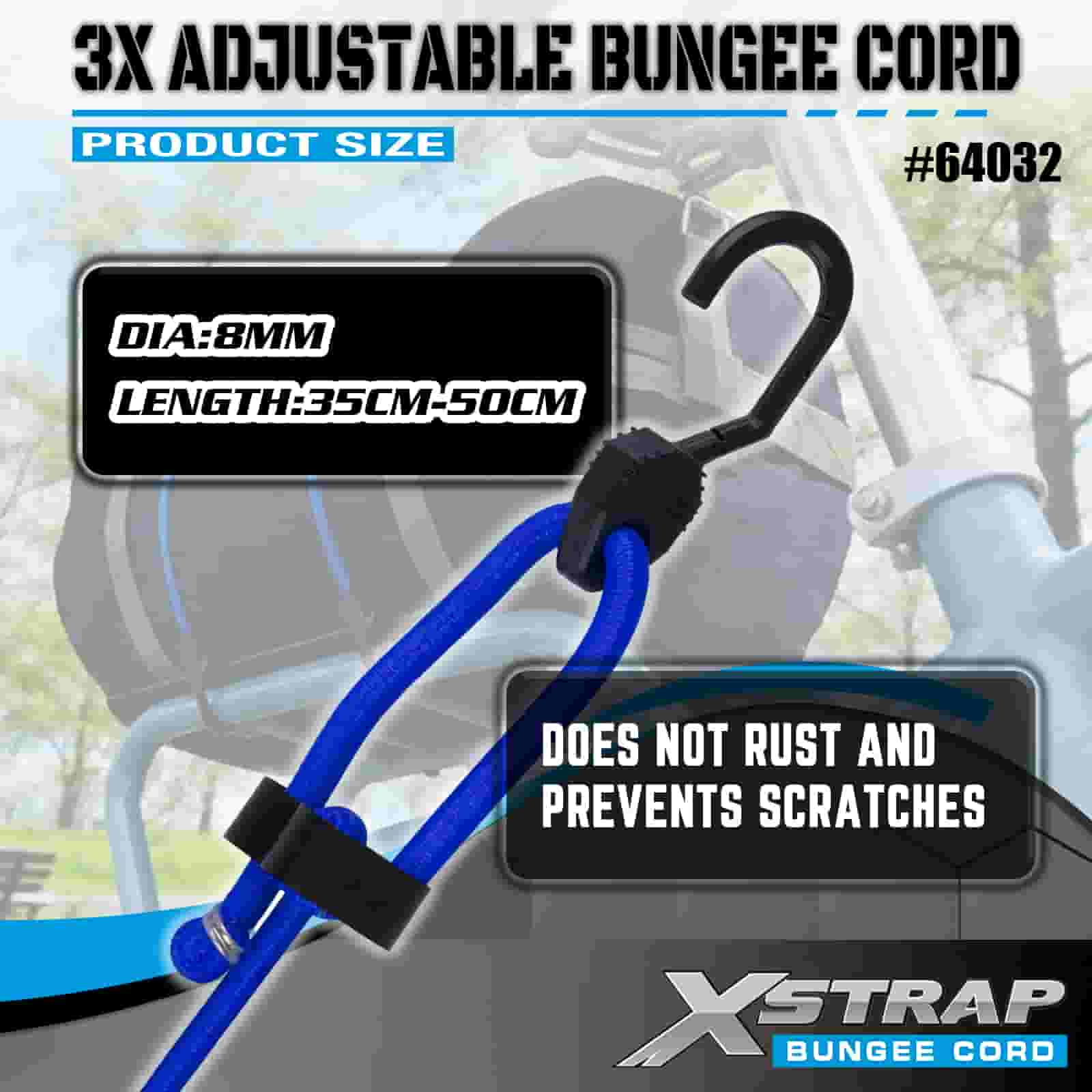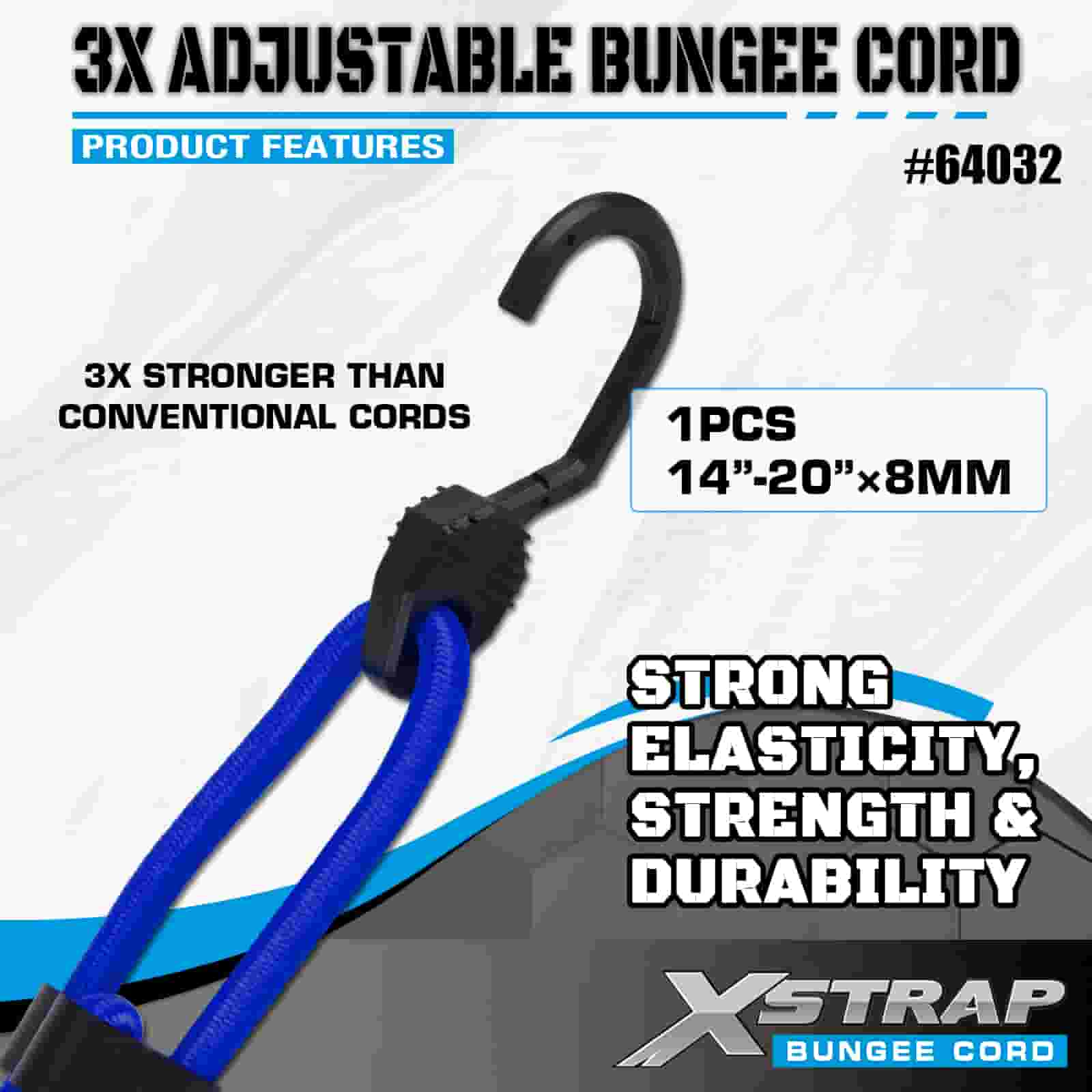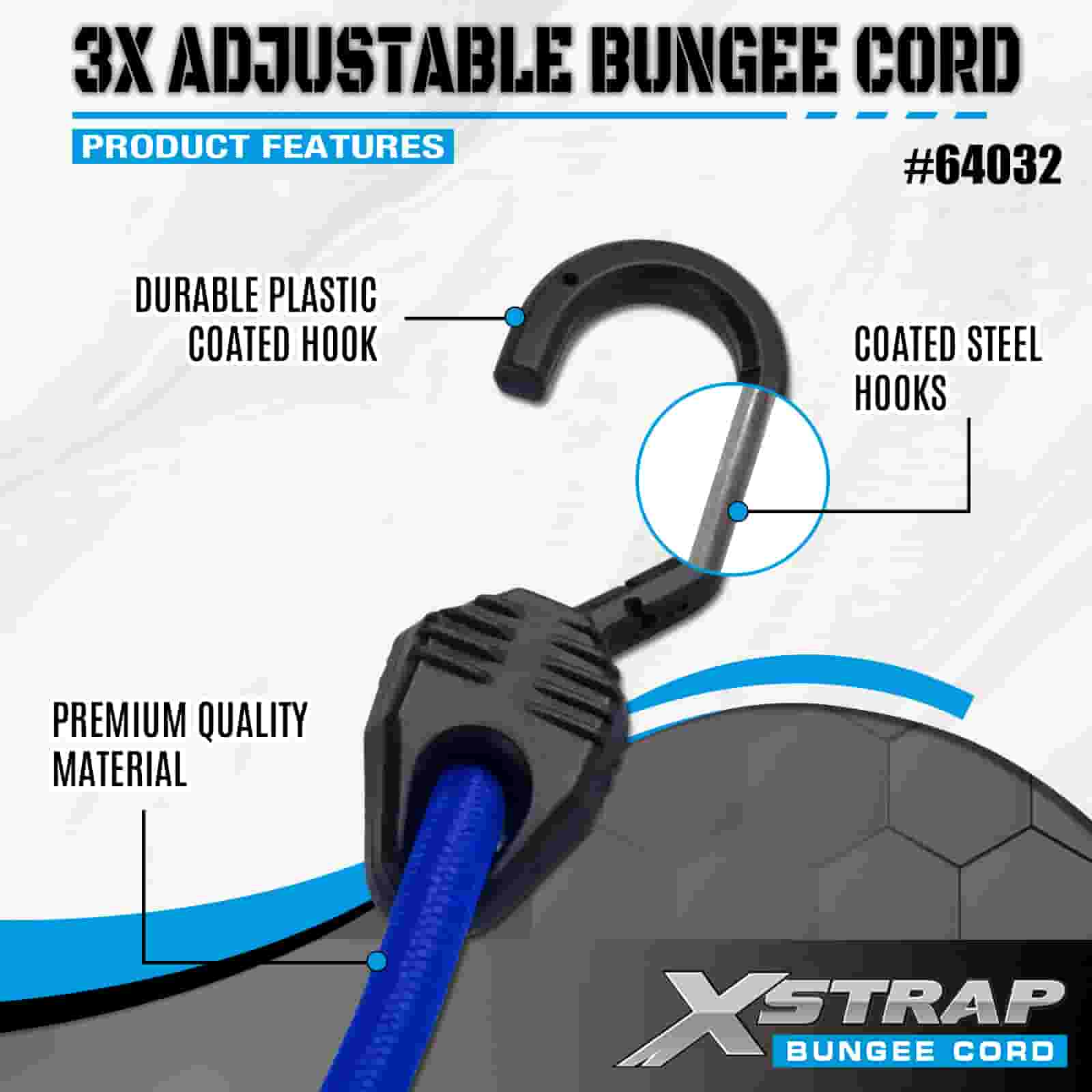 Xstrap 3X nastavitelné bungee šňůry 8mm x 14”-20”, 132-165 liber pevnost v přetržení se silnými háčky pro kontrolu nákladu .