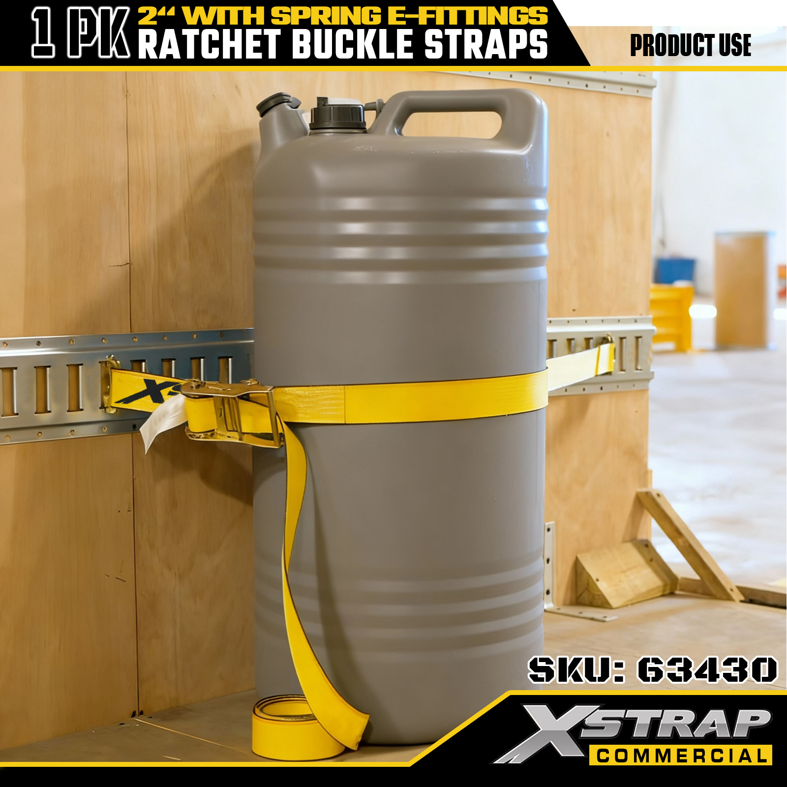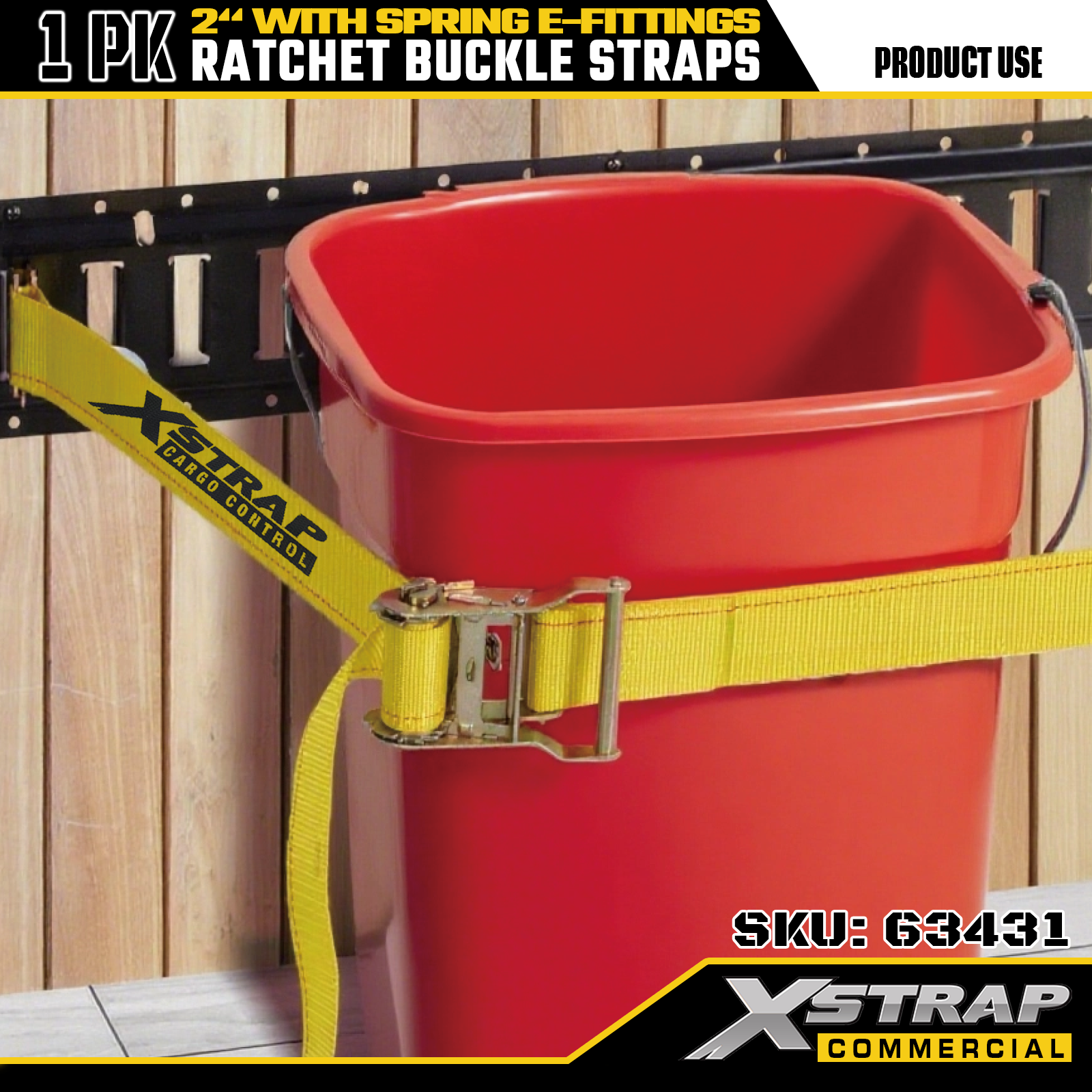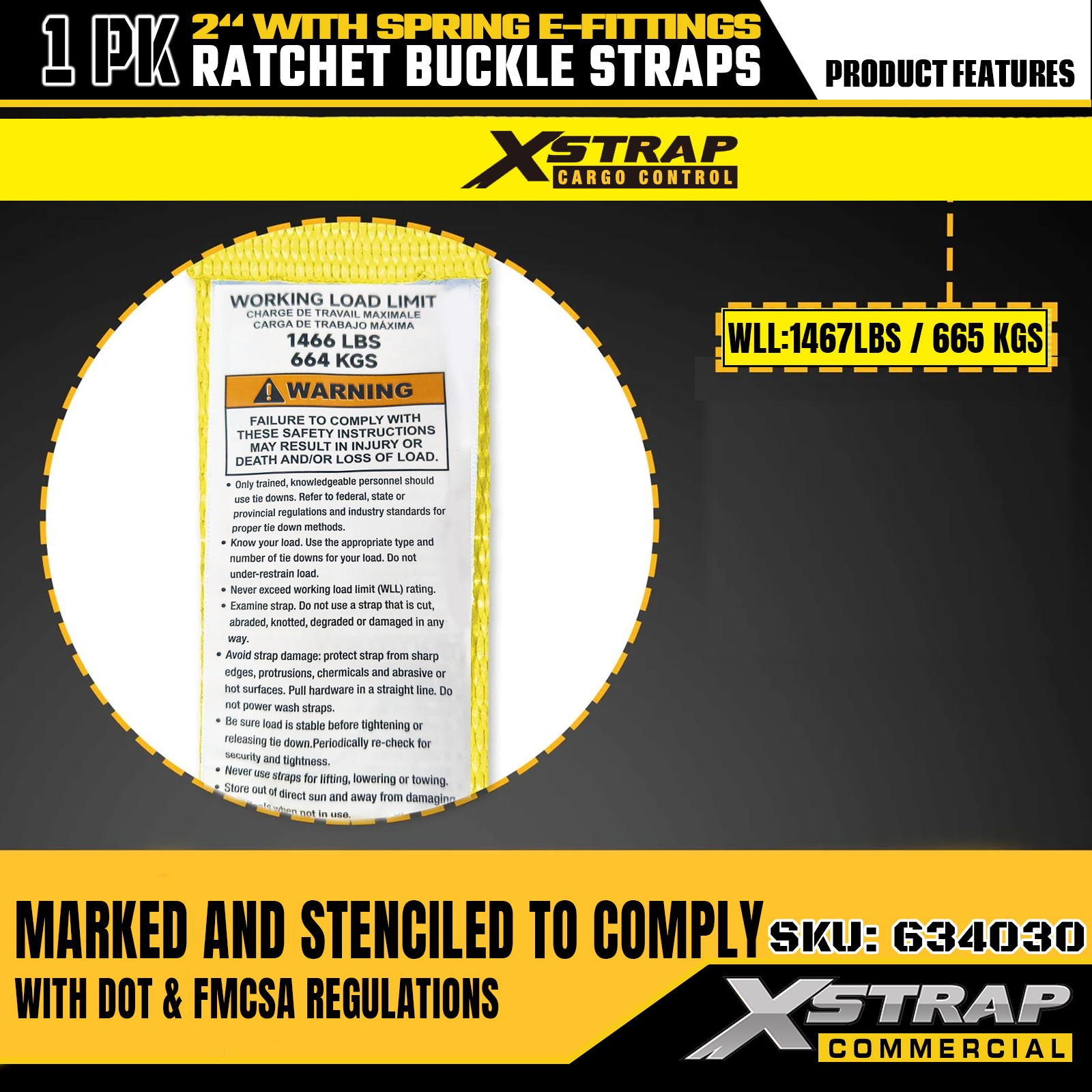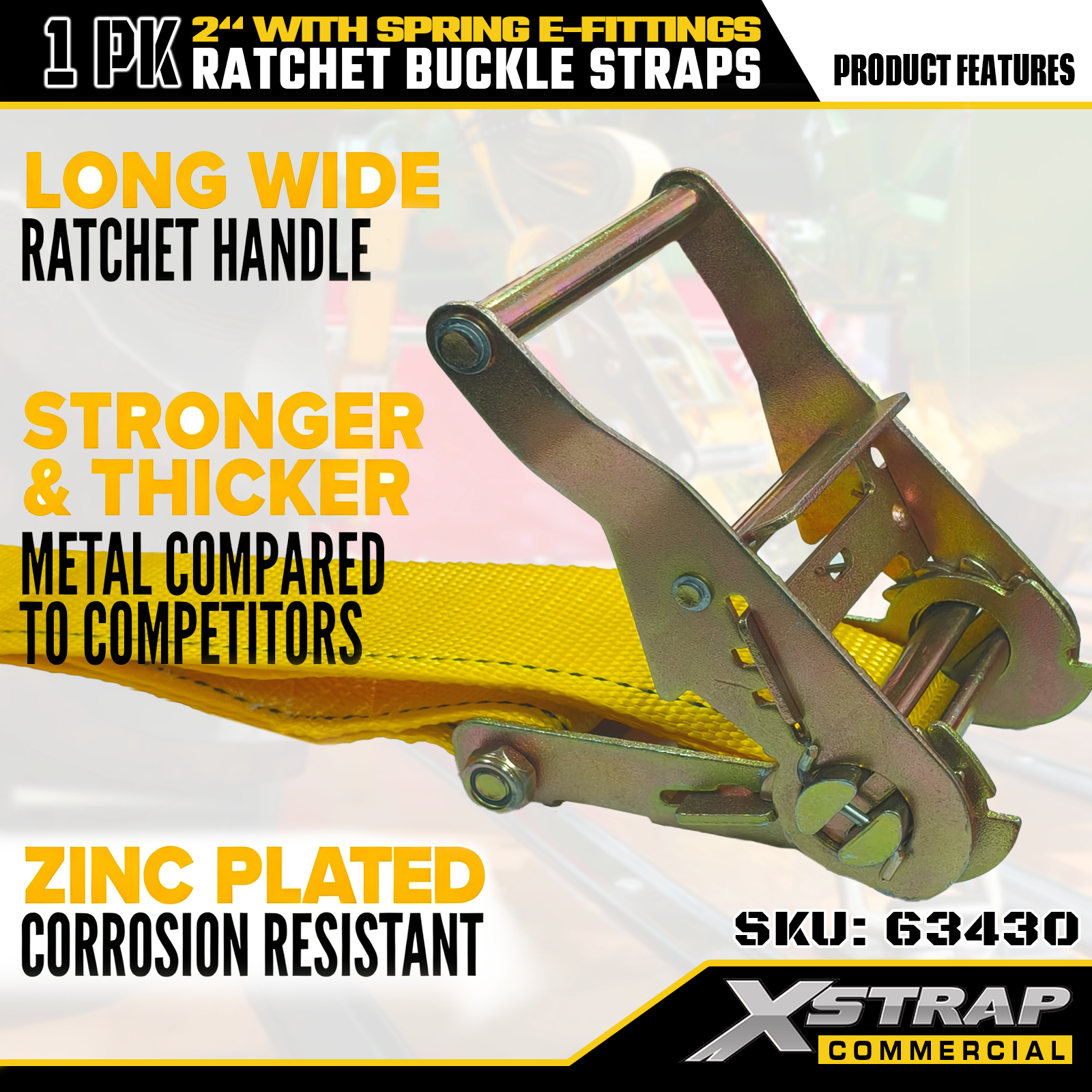 Xstrap 1 balení polyesterových ráčnových upínacích popruhů s pružinovým E fitinkem, 2" x 12" popruhy pro zajištění těžkého nákladu, kapacita 4401 lbs (1467 lbs) pro nákladní automobil, sekačku, čtyřkolky