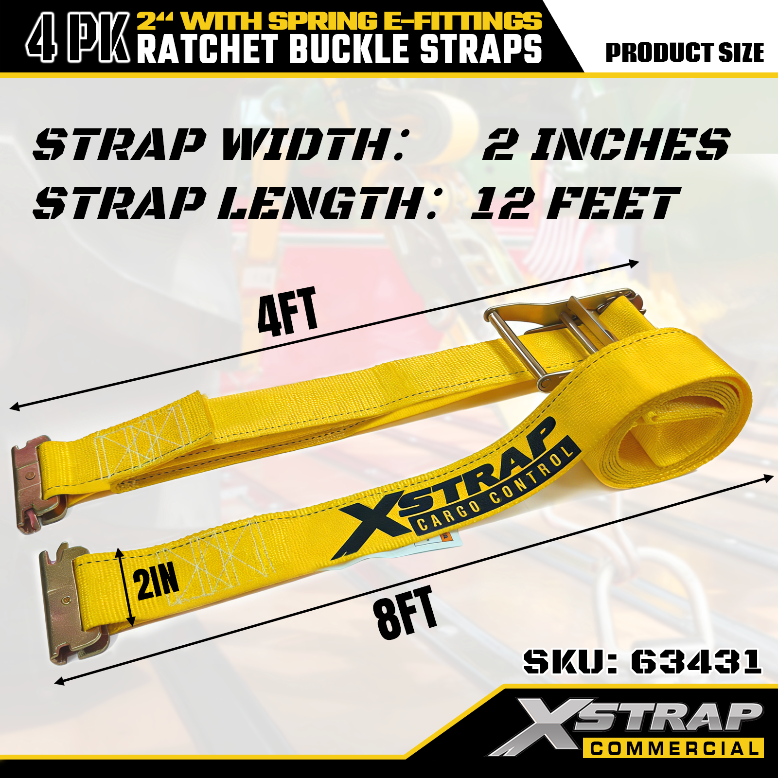 2" x 12" 4PK Popruhy s ráčnovými přezkami s pružinovým E-kováním