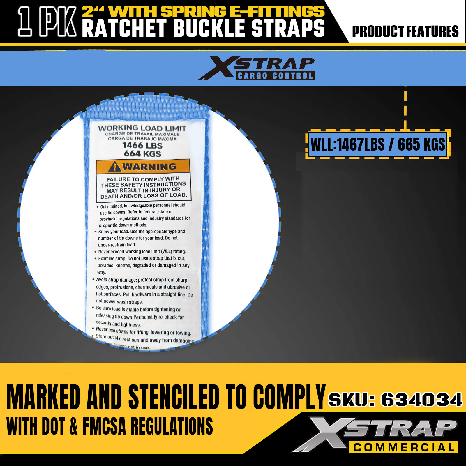- Jasné označení nosnosti pro bezpečnou aplikaci: Jasně označeno 1467 lbs bezpečným pracovním zatížením (SWL) a maximální pevností v lomu 4401 lb. Poskytuje základní bezpečnostní pokyny k zabránění přetížení a zajišťuje bezpečnost nákladu během přesunu a přepravy.