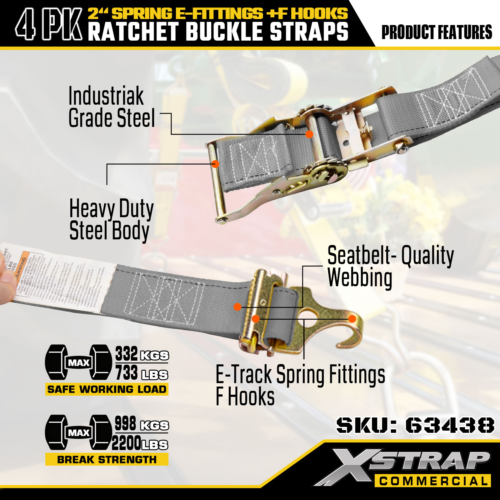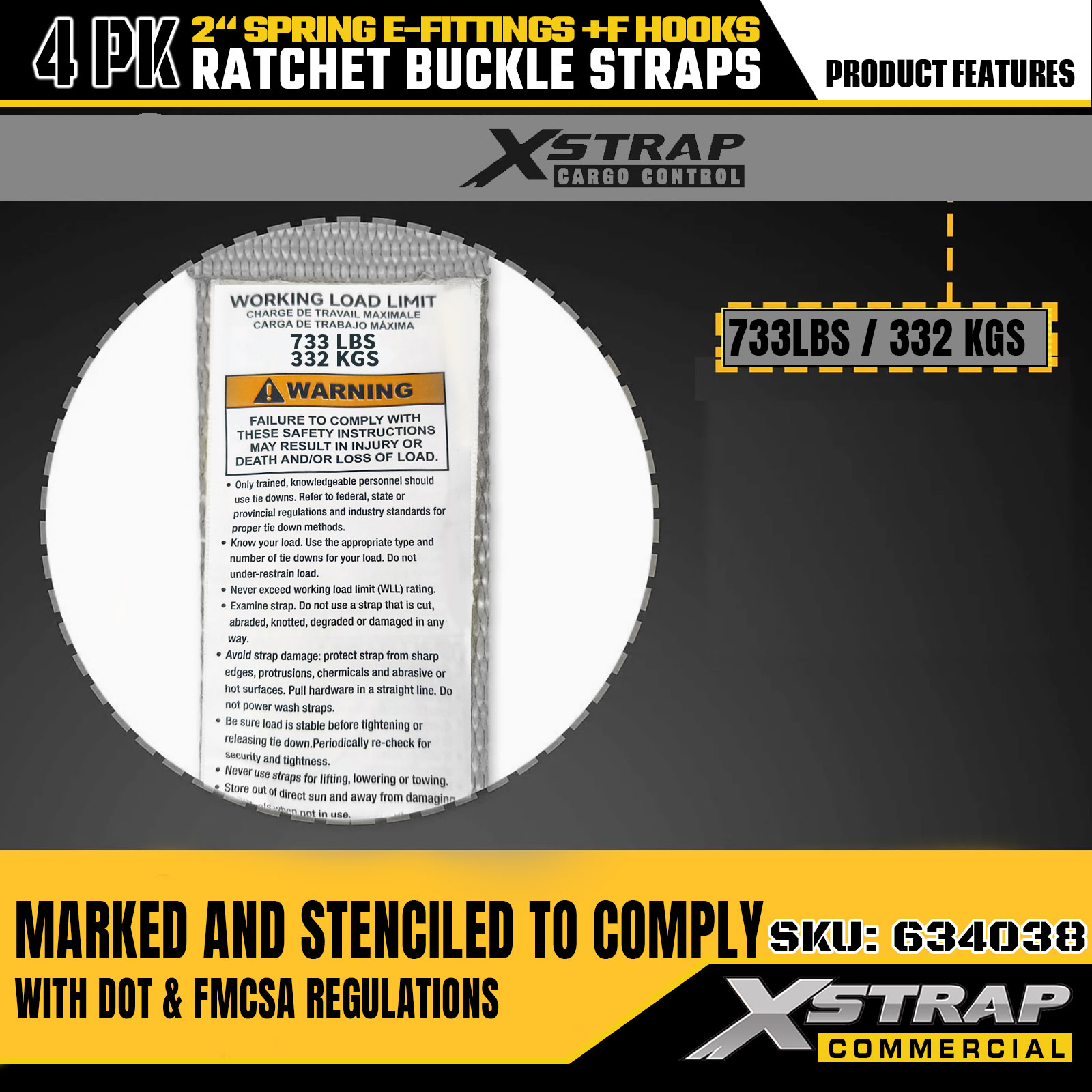 - Jasné bezpečnostní značení: Každý popruh je označen 733 lb SWL a 332 lb pevností v přetržení, což poskytuje základní bezpečnostní vodítko, aby se zabránilo přetížení. Bezpečné pro zabezpečení krabic, nábytku, spotřebičů atd.
