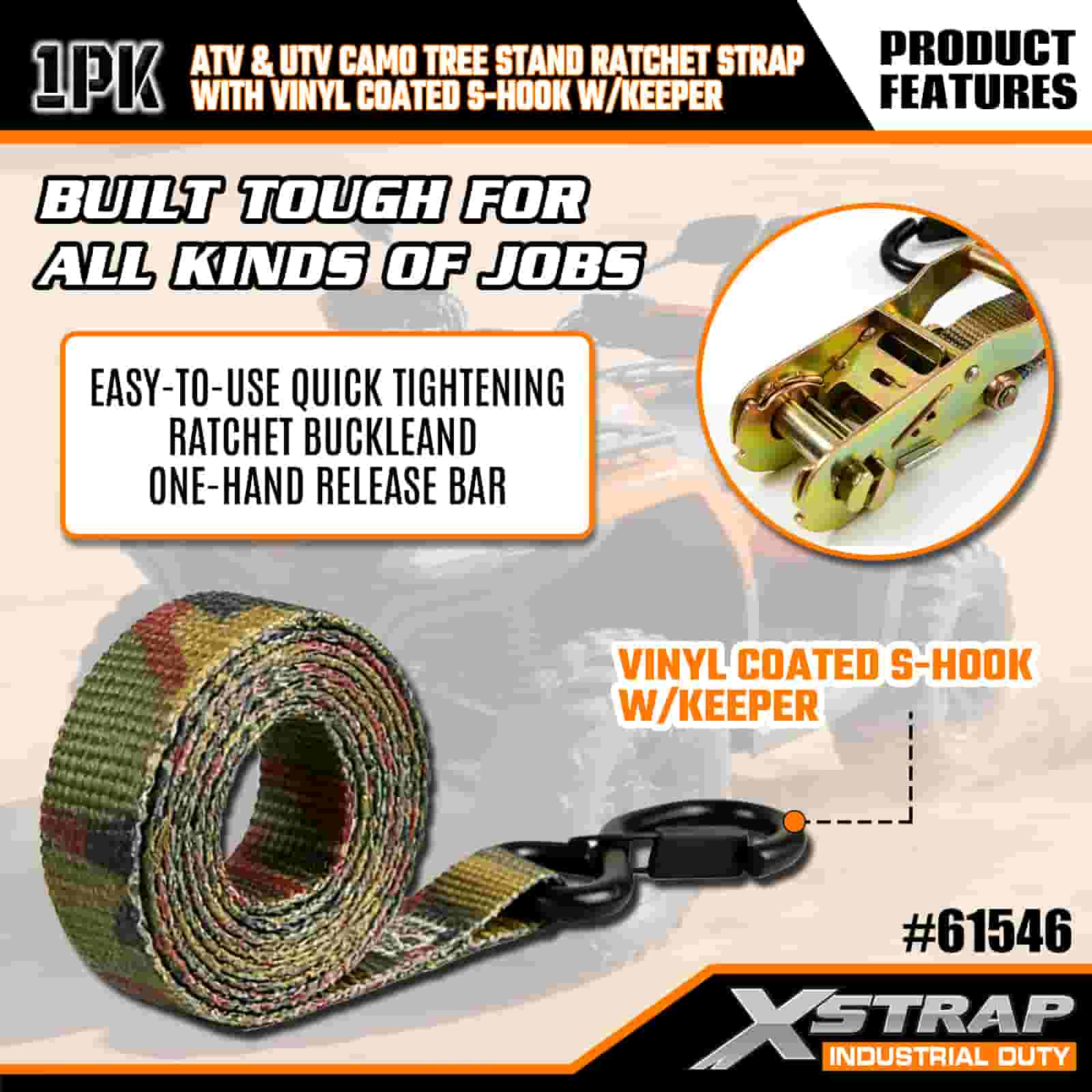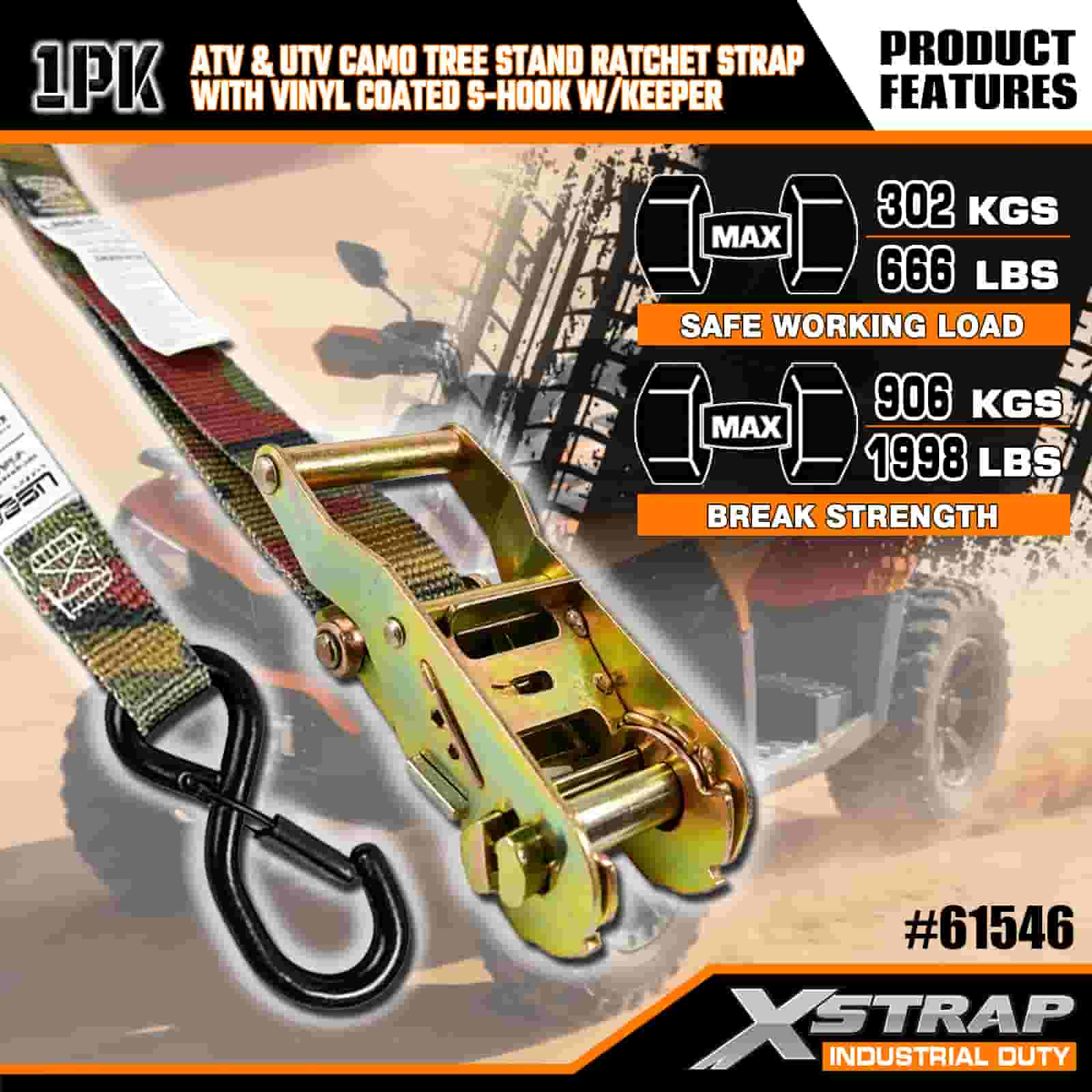 - Blend In, Lock In: Maskovací design umožňuje řemínku splynout s venkovním prostředím, zatímco jeho zesílené prošívání a robustní ráčna udrží vaši ATV, stojan na strom nebo motocykl pevně uzamčen. Už se nemusíte starat o přesun nákladu na nerovném terénu.