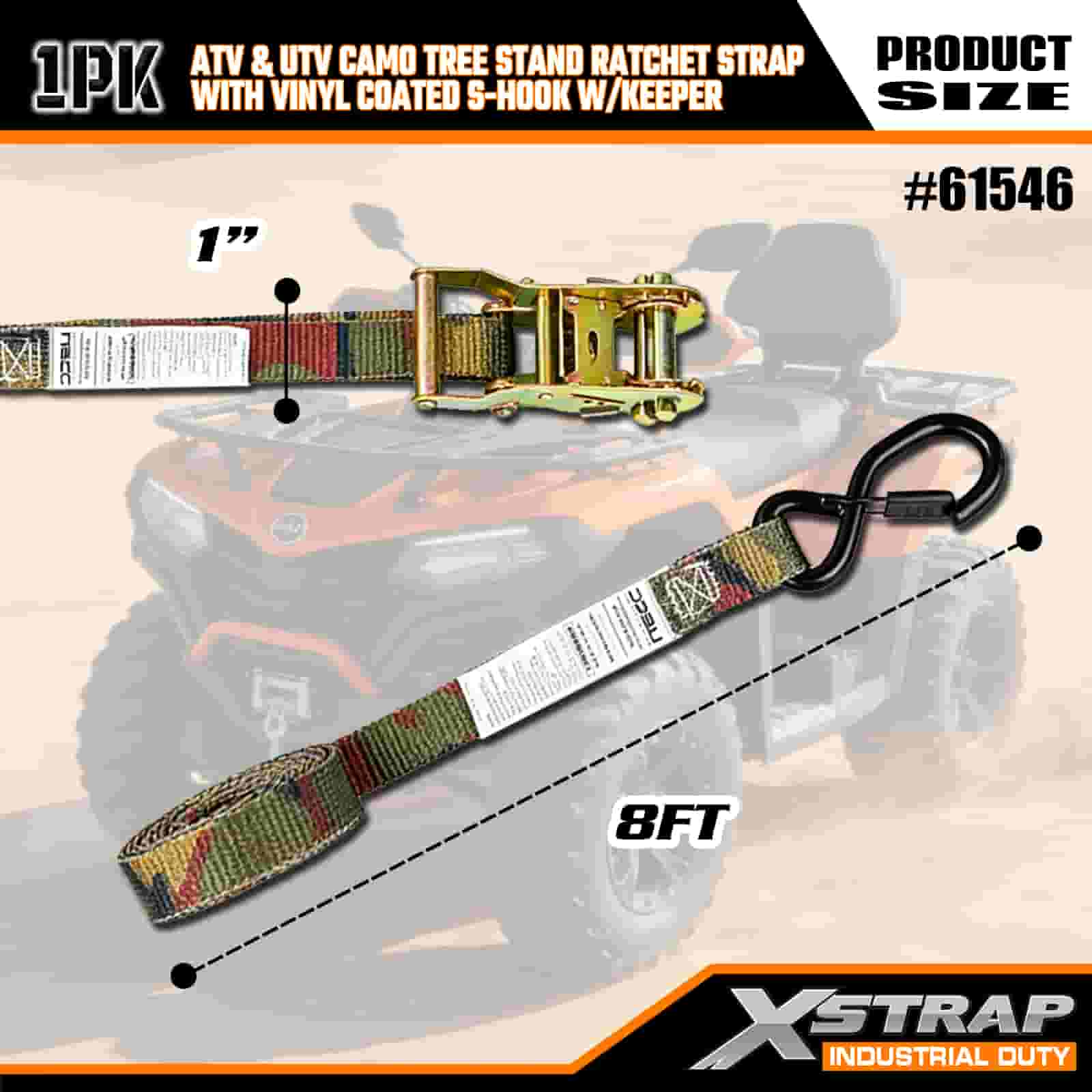 Řemínek s ráčnou Xstrap s bezpečnostními háčky ve tvaru písmene S s vinylovou vrstvou, 1” x 8' polyesterový popruh s ráčnou, popruhy pro zajištění nákladu s kapacitou 666 liber s bezpečnostními S háčky pro přívěs, lyžařský člun s plochým lůžkem, malé auto, těžké vybavení.