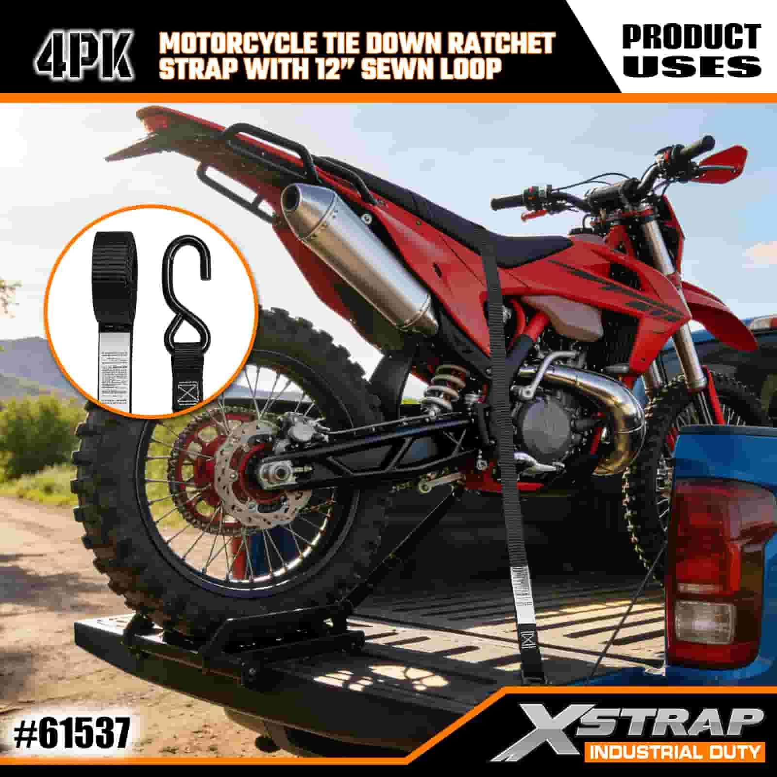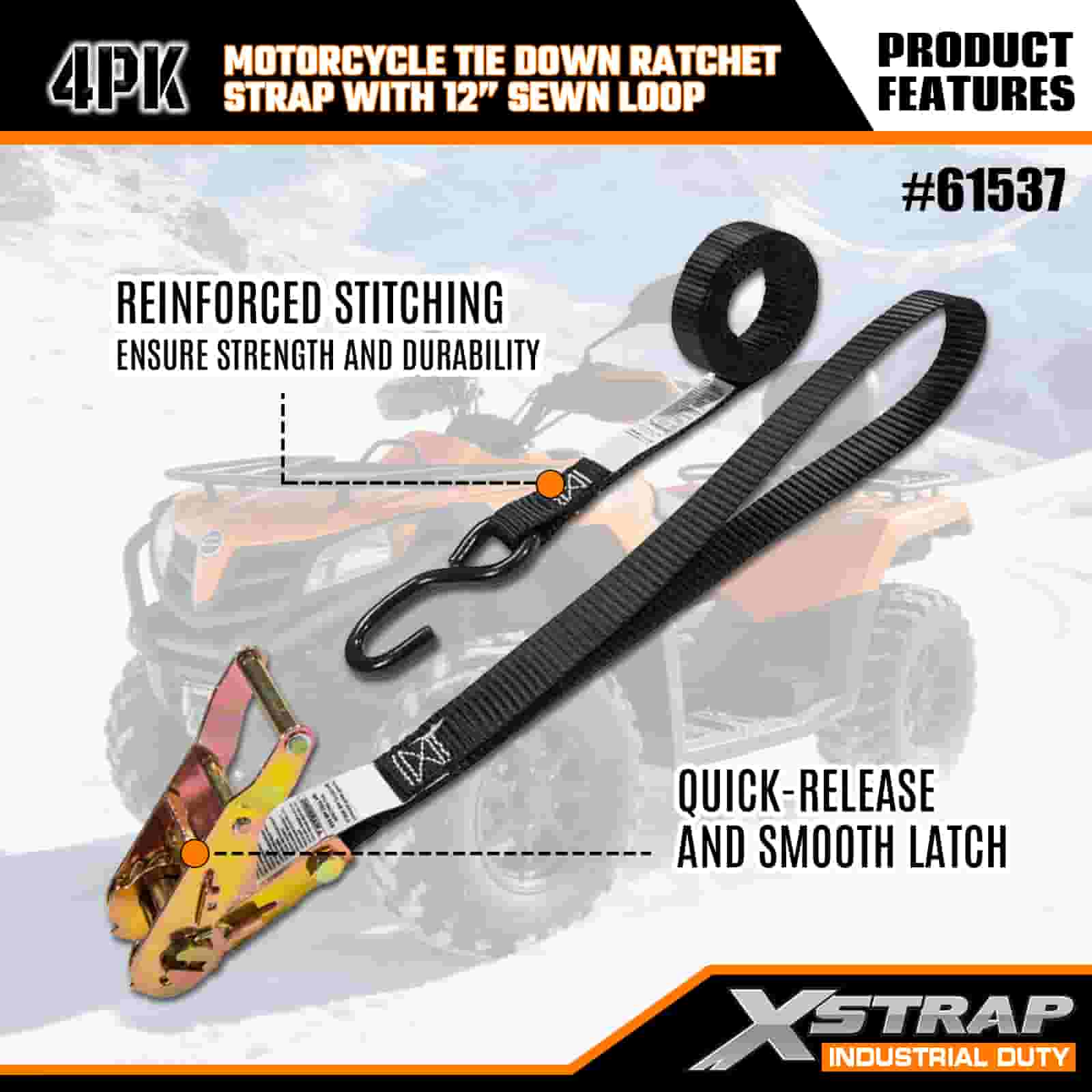 - 4-balení 6FT popruhů pro upevnění motocyklu: Prodává se jako sada 4 popruhů (1 palec na šířku × 6 stop na délku), ideální pro zajištění motocyklů, čtyřkolek a malého vybavení v korbě nákladních automobilů nebo během přepravy.