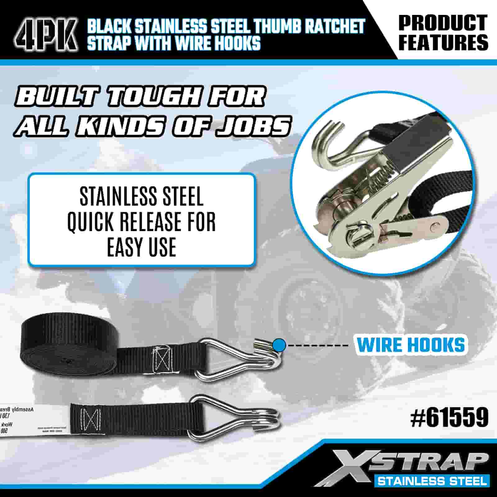 - Dobrodružný a průmyslový odolný, navržený pro výkon Tento řehtačkový řemínek z nerezové oceli, navržený pro tažení terénních motocyklů i pro těžké použití na staveništi, je vyroben tak, aby si poradil s blátem, sněhem a každodenním nošením. Důvěřujte 20 letým zkušenostem společnosti XStrap v oblasti kontroly nákladu pro nákladní loď, na kterou se můžete spolehnout bez ohledu na terén.