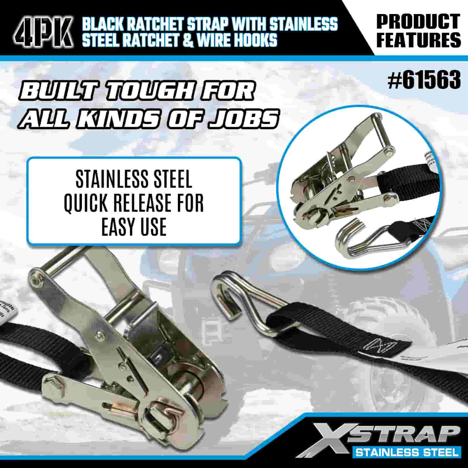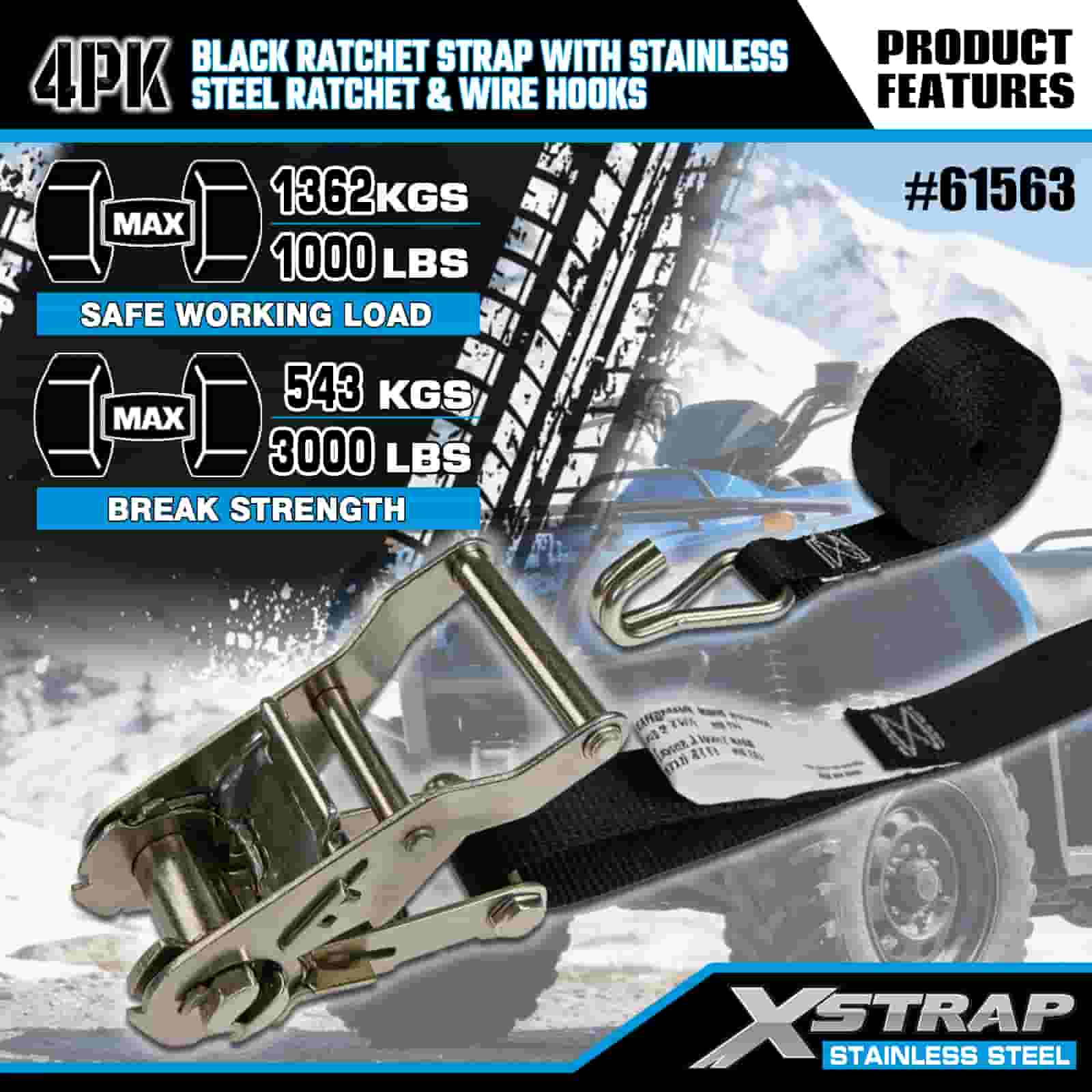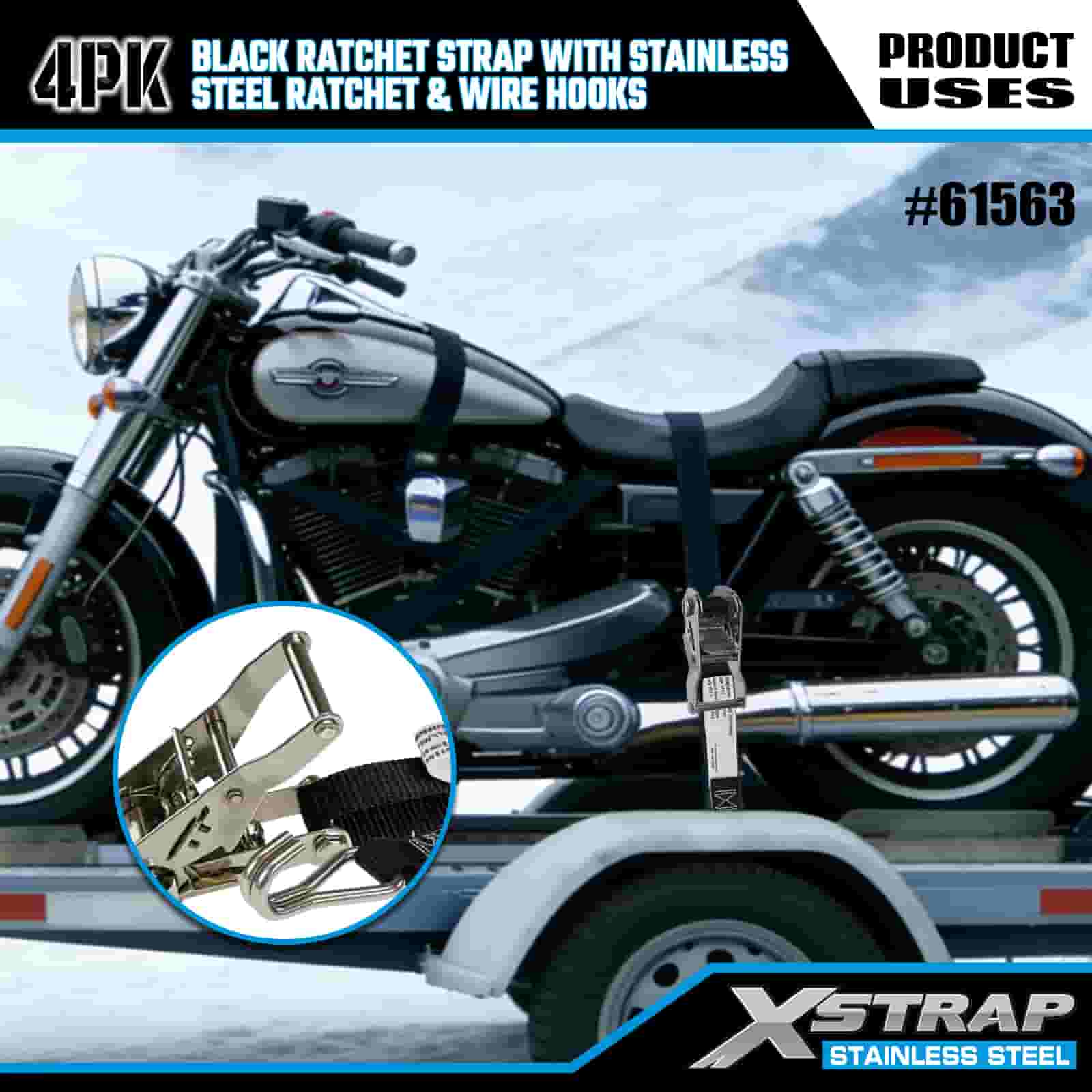 - Zásadní těžká přeprava, vytvořená pro použití v terénu a ve městě Tato 4 sada ráčnových popruhů, navržená pro zajištění motocyklů, čtyřkolek a nákladu v drsném terénu i v rušném městském prostředí, poskytuje nekompromisní pevnost. S podporou 20 let zkušeností společnosti XStrap v oblasti kontroly nákladu můžete věřit, že váš náklad zůstane uzamčen, bez ohledu na terén.