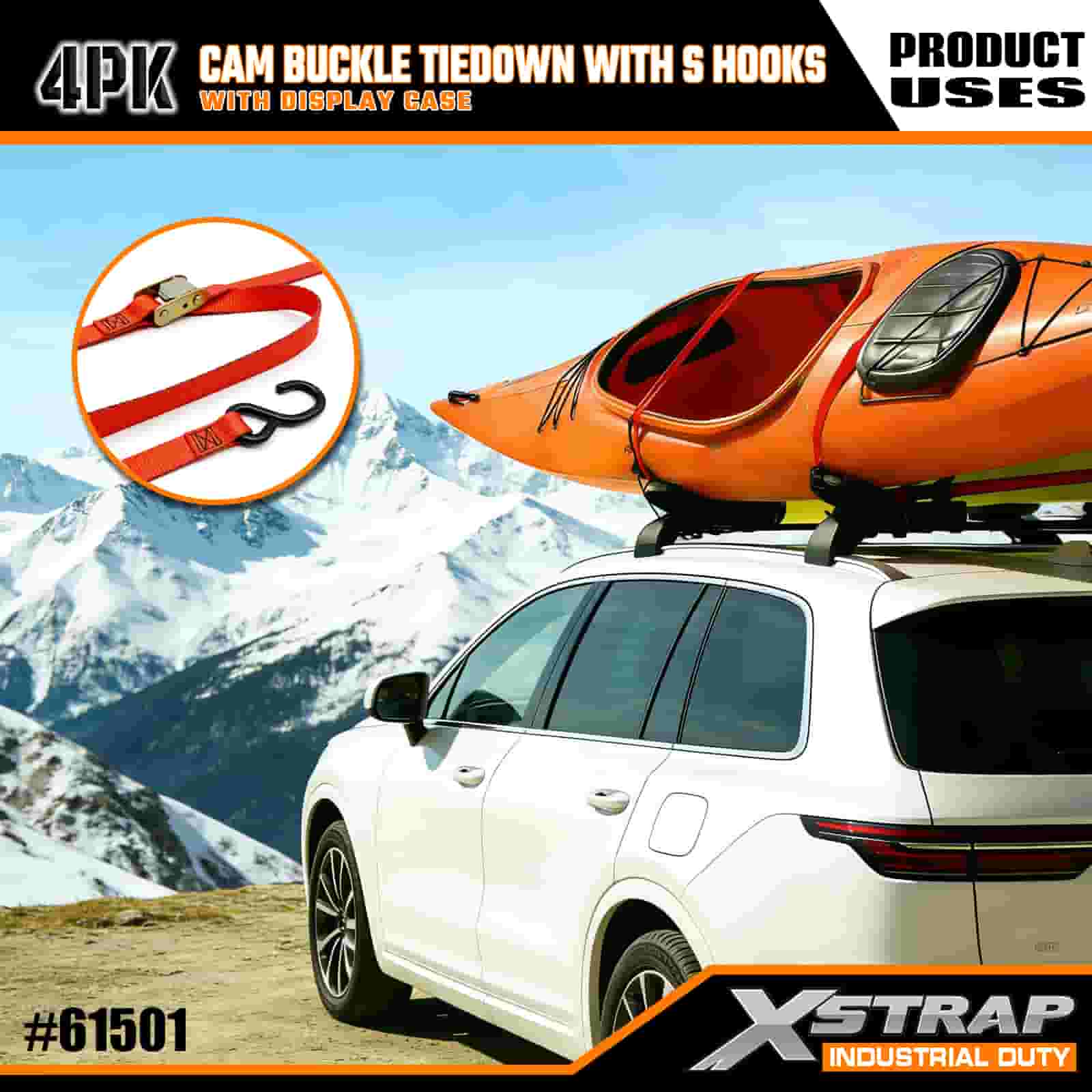 - Praktické balení 4 kusů s vitrínou: Prodává se v sadě 4 kusů (s balením na displej) pro hromadné použití a každý popruh měří 2 palce na šířku × 6 stop na délku, což je ideální pro zajištění předmětů, jako jsou kajaky, outdoorové vybavení nebo náklad.