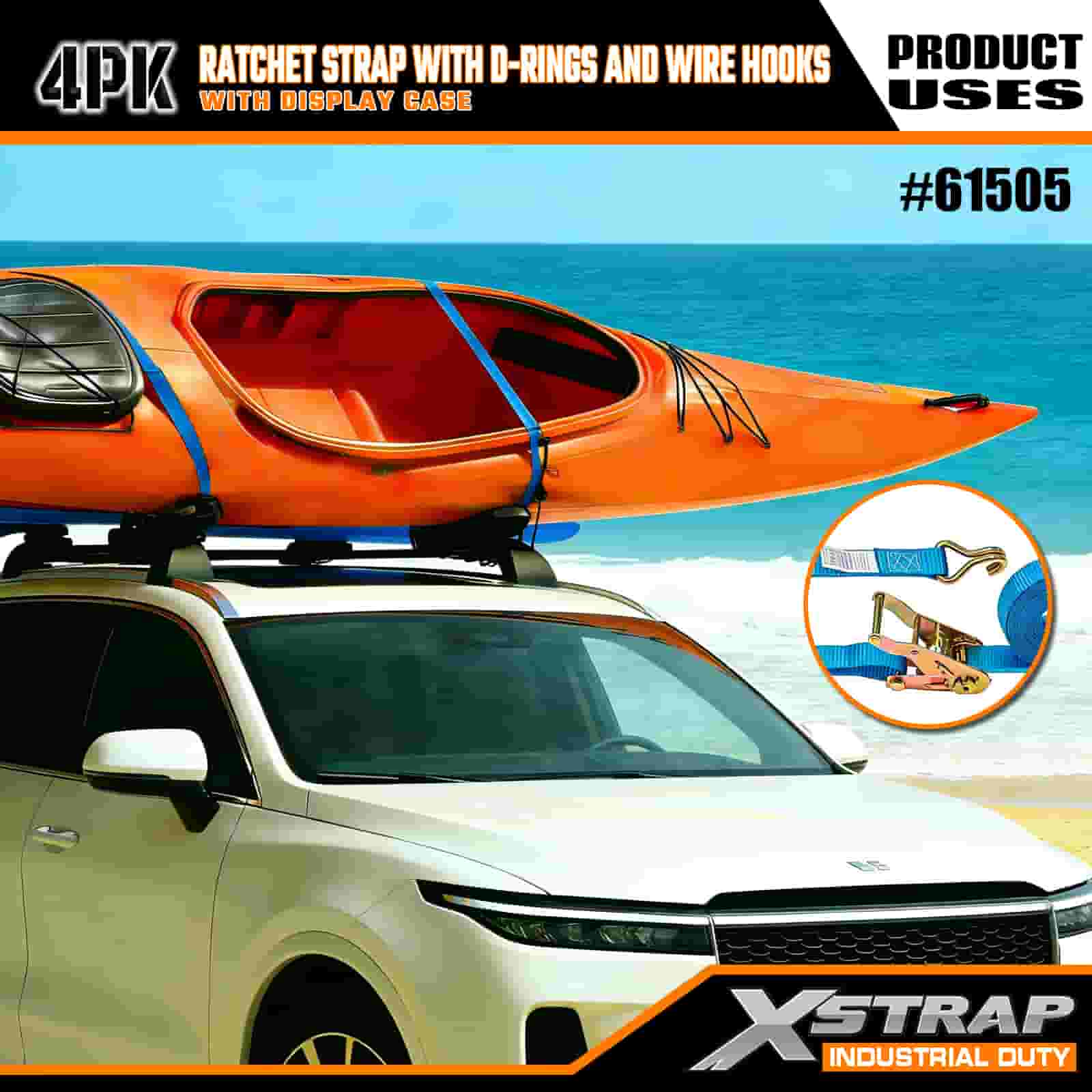 - Praktické balení po 4 kusech s vitrínou: Prodává se v sadě 4 kusů (s balením na displej) pro hromadné použití a každý popruh měří 1 palec na šířku × 15 stop na délku – ideální pro zajištění předmětů, jako jsou kajaky, outdoorové vybavení nebo těžký náklad.
