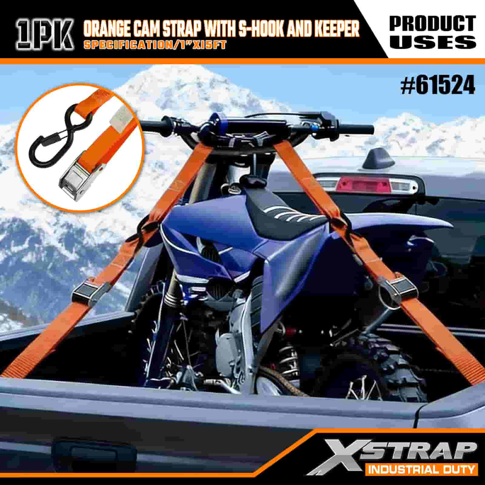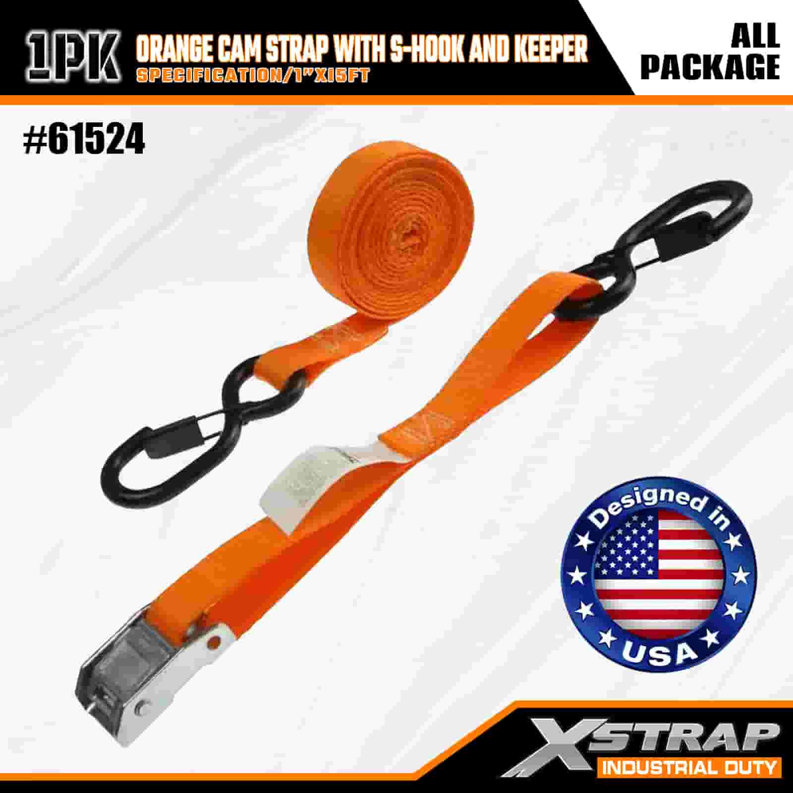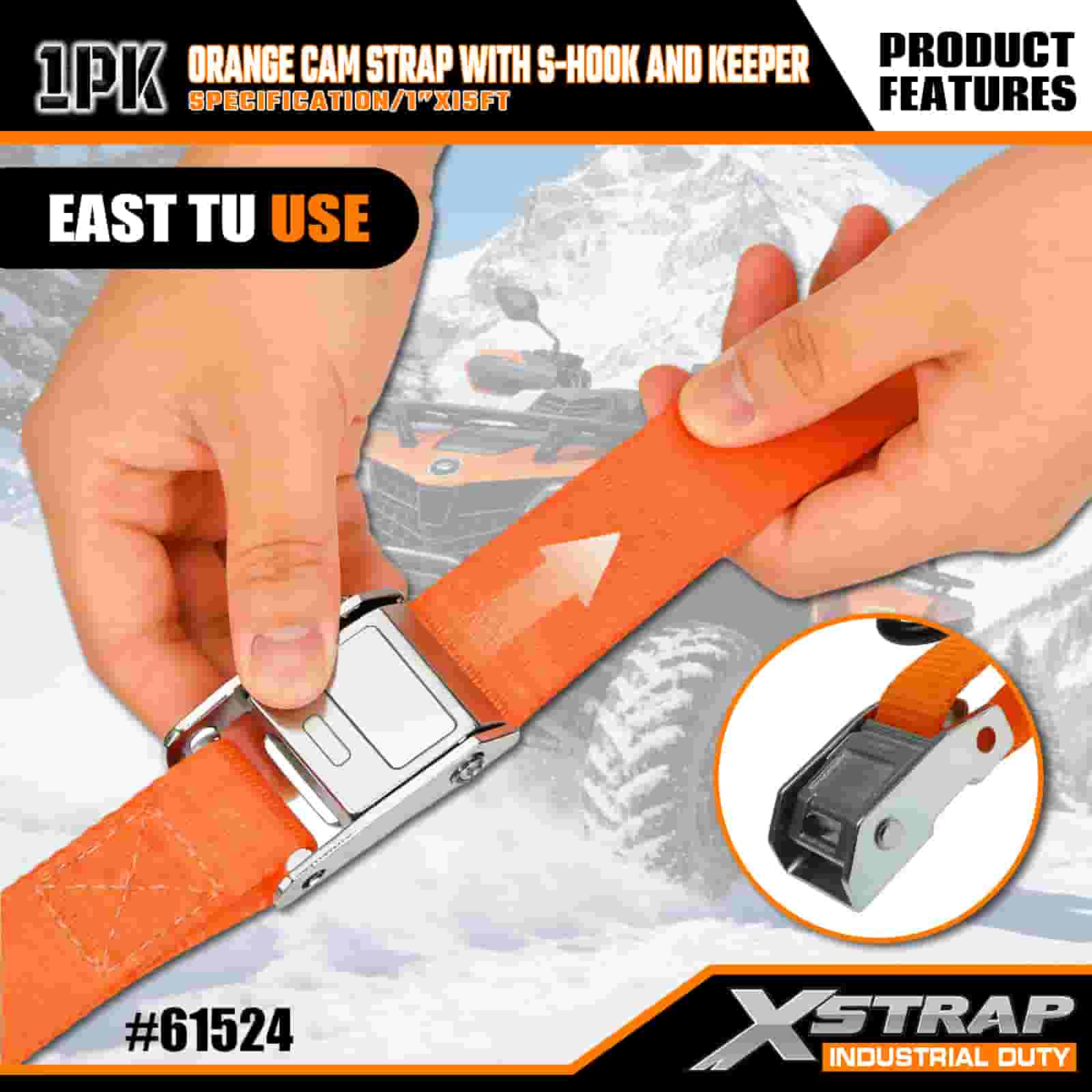 Xstrap Qrange Cam popruh s S-háčkem a držákem, 1" x 15" polyesterový upínací popruh s ráčnovým popruhem, 400 liber kapacitní popruhy pro upevnění nákladu s bezpečnostními S háčky pro vážné profesionály k zajištění nákladního přívěsu, plochého přívěsu, lyžařského člunu, malého auta.