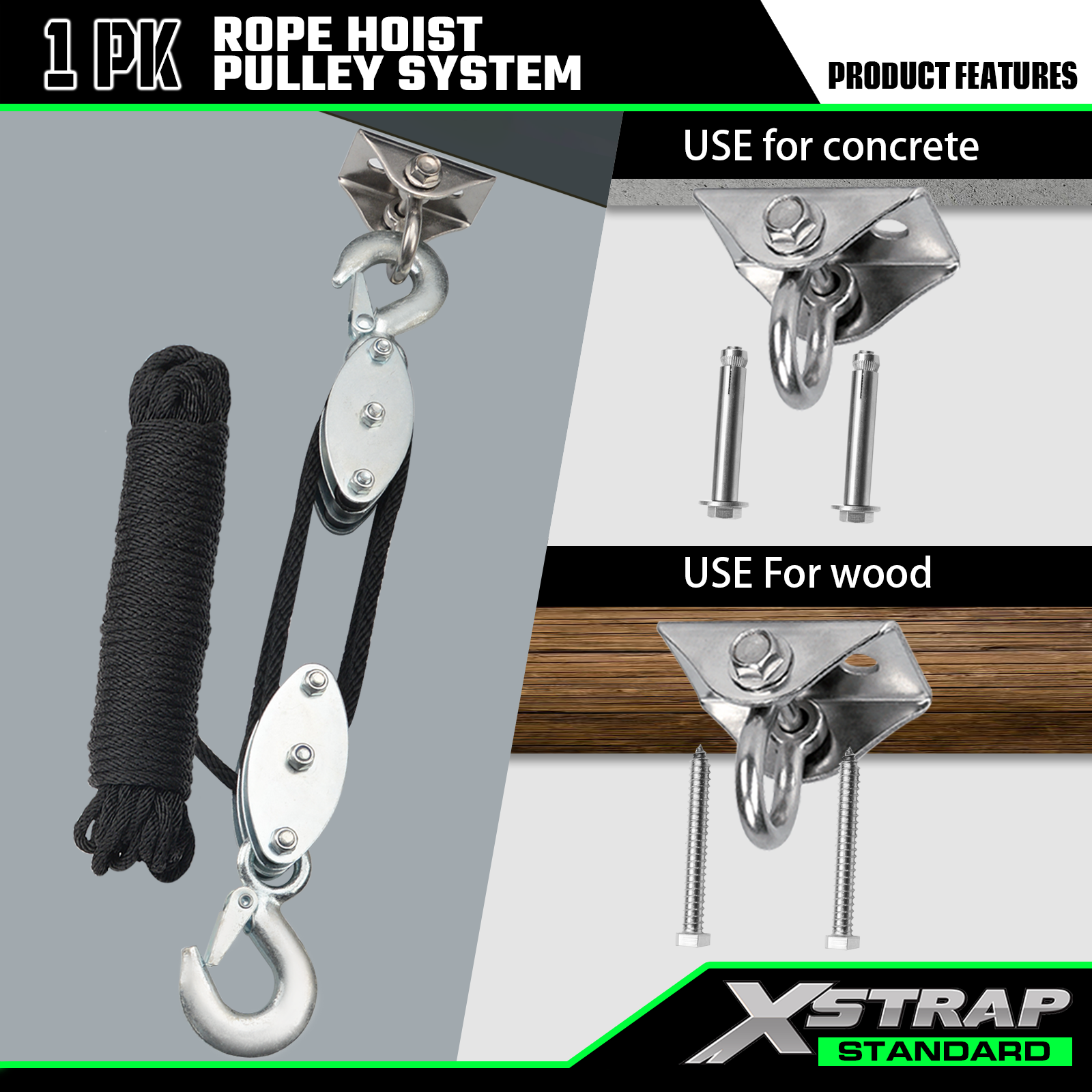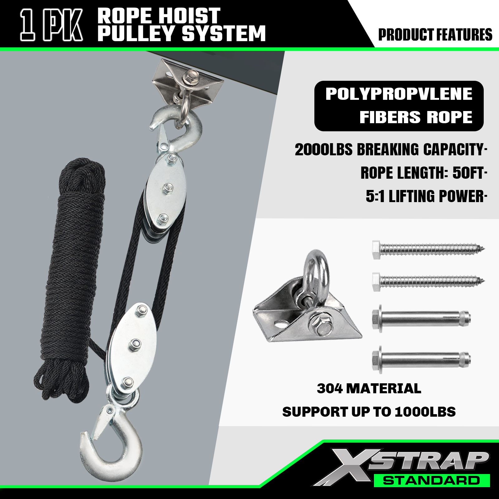 Xstrap AHLT0004 50 Ft lanový kladkostrojový systém 1000 LB