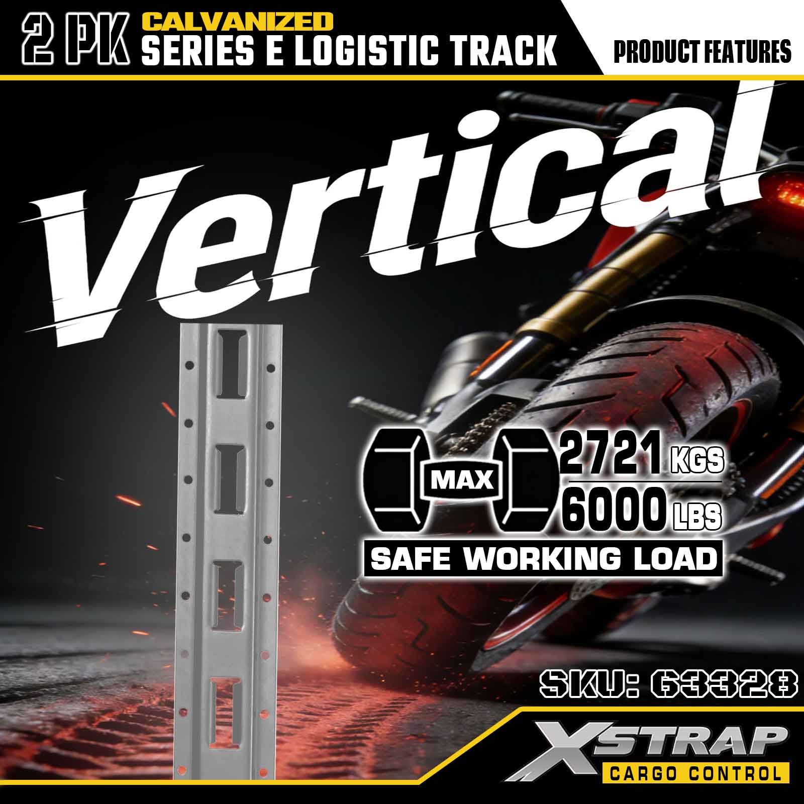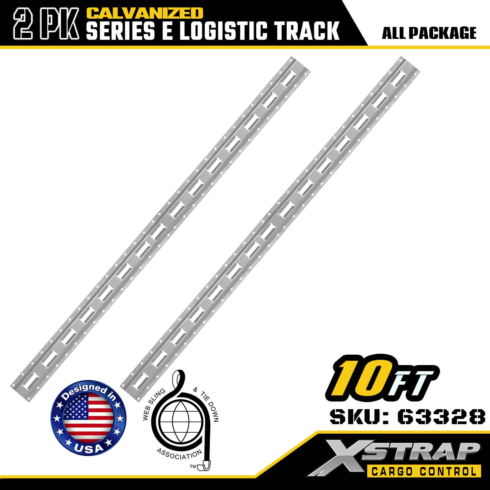 Xstrap 63328 10 stop galvanicky pokovená stříbrná stahovací kolejnice E-Track – ocel 12 kalibru s galvanizovaným povrchem, nosnost 6000 LBS, 2 balení pro zajištění nákladu