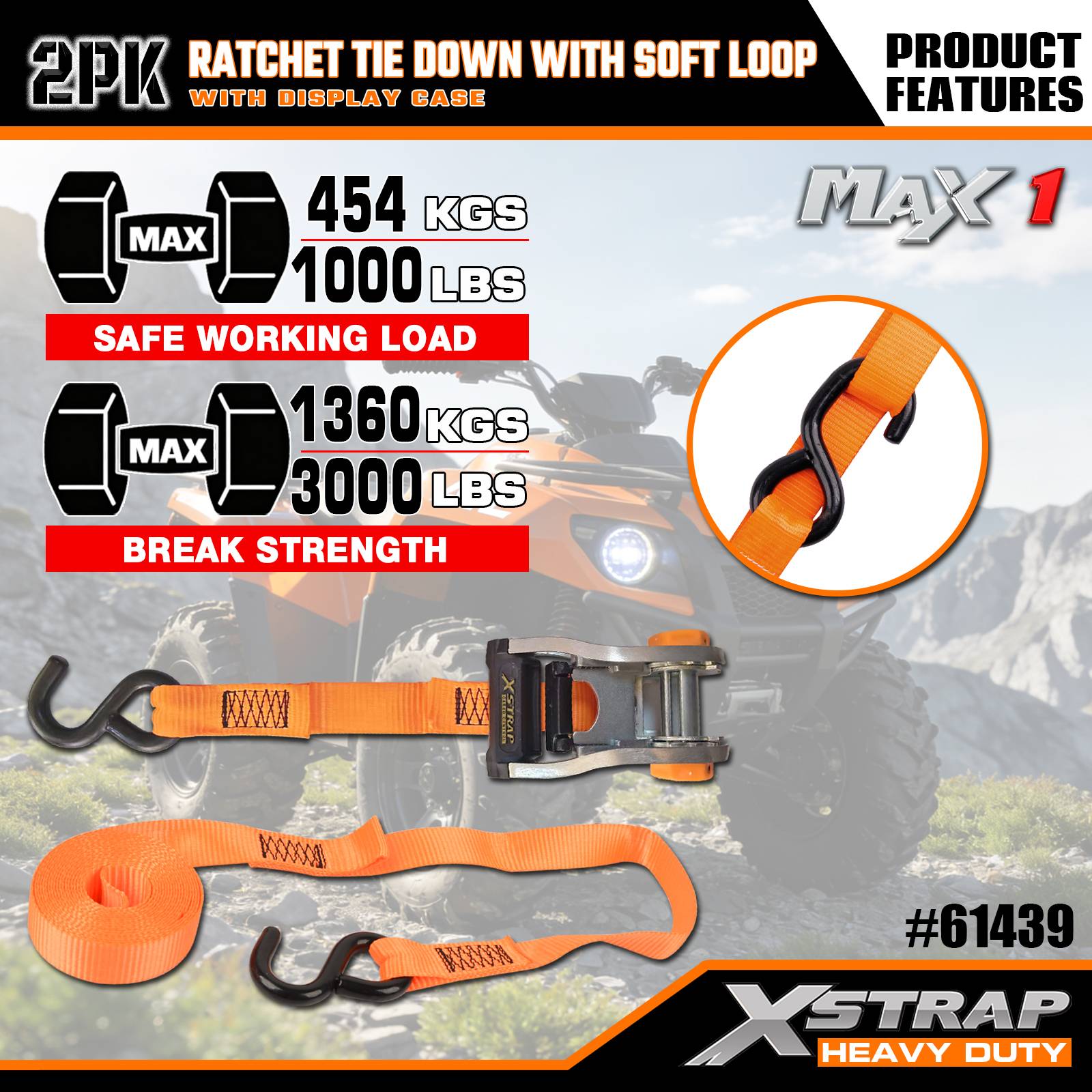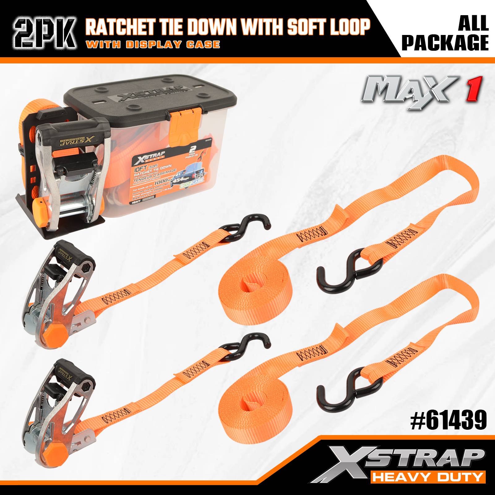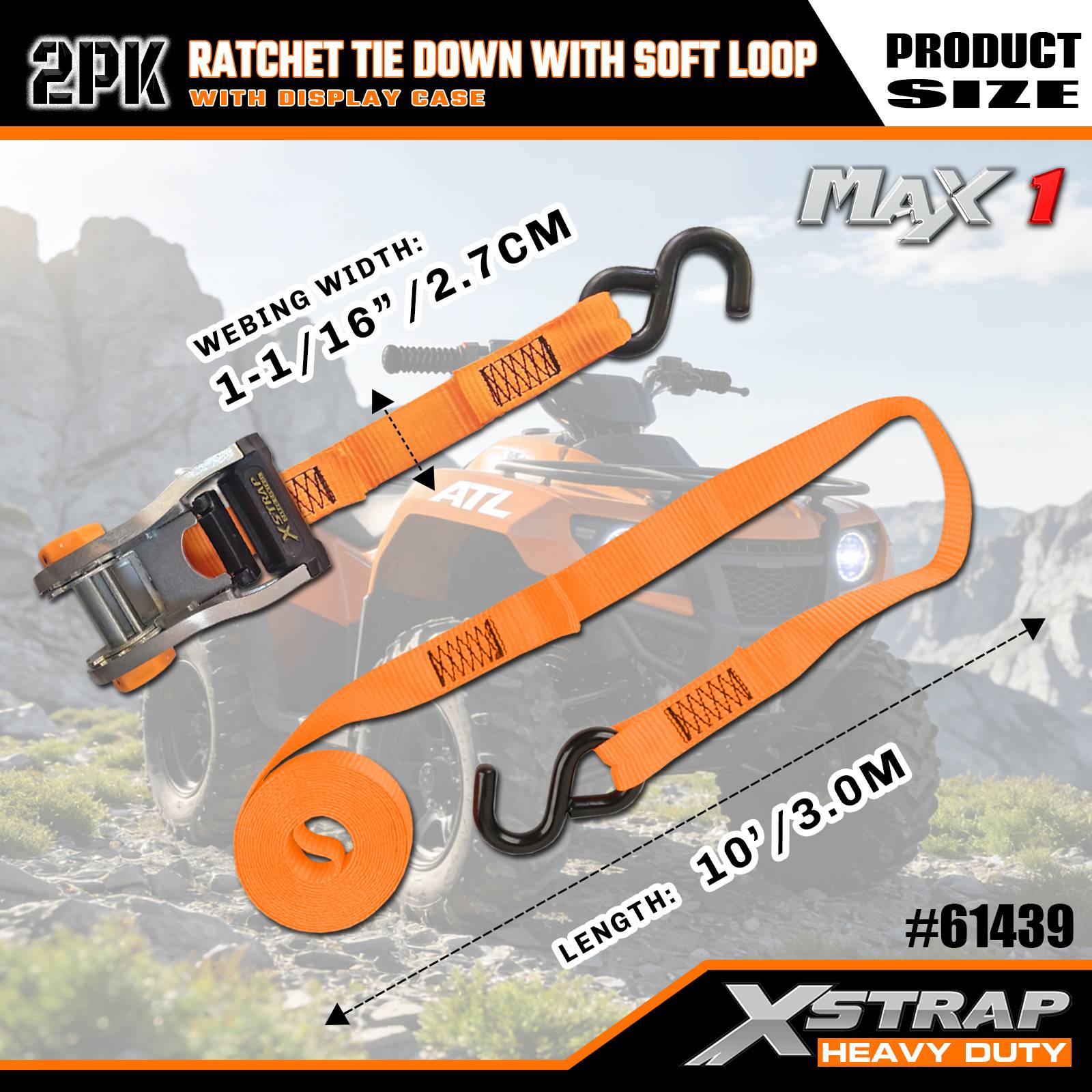 Xstrap 2 Pack Ratchet Uvazovací s měkkou smyčkou, 1-1/16” x 10' Polyesterový upínací popruh s ráčnou, popruhy pro upevnění nákladu s kapacitou 1 000 liber s háky S pro nákladní automobily, SUV, motocykly s horním nosičem automobilů.