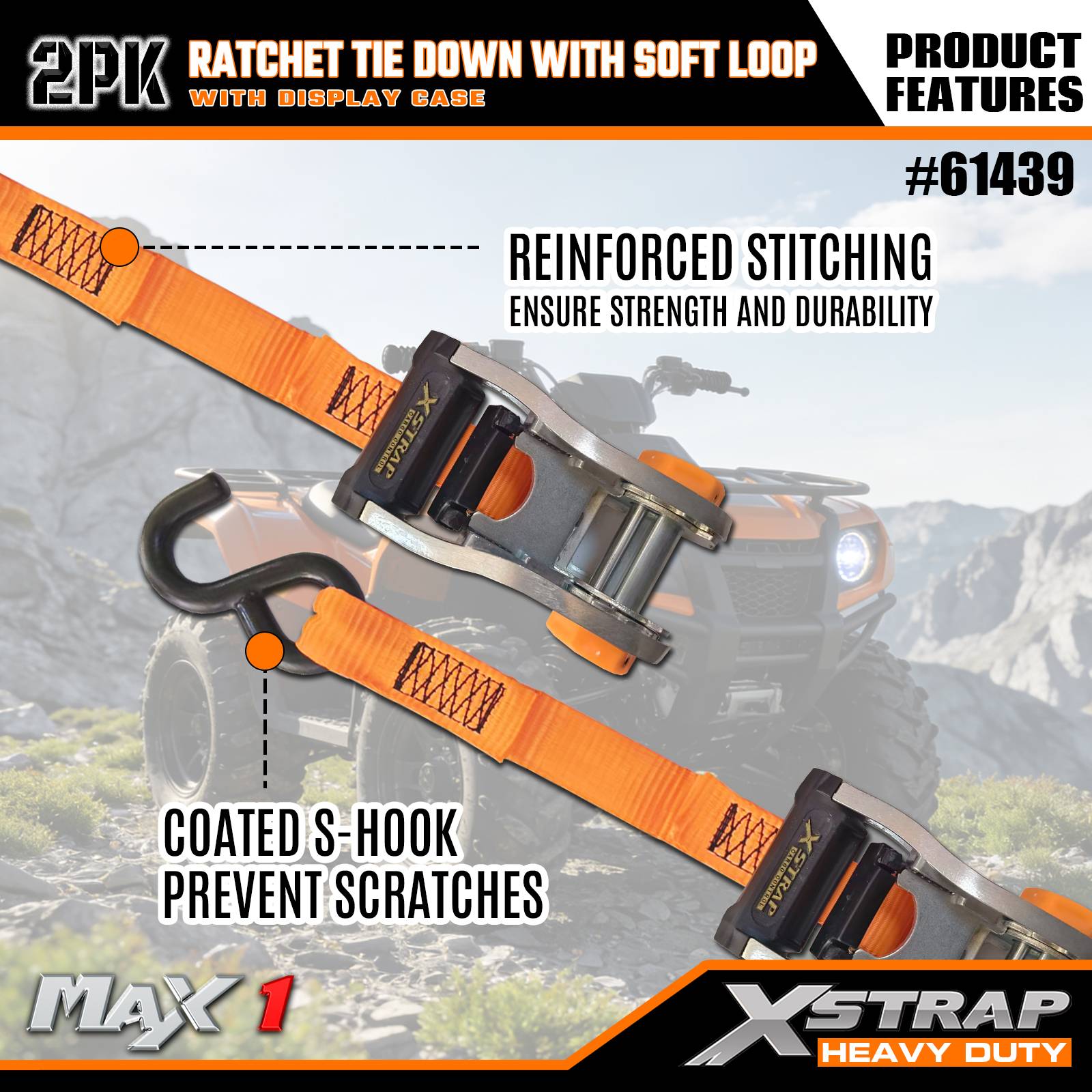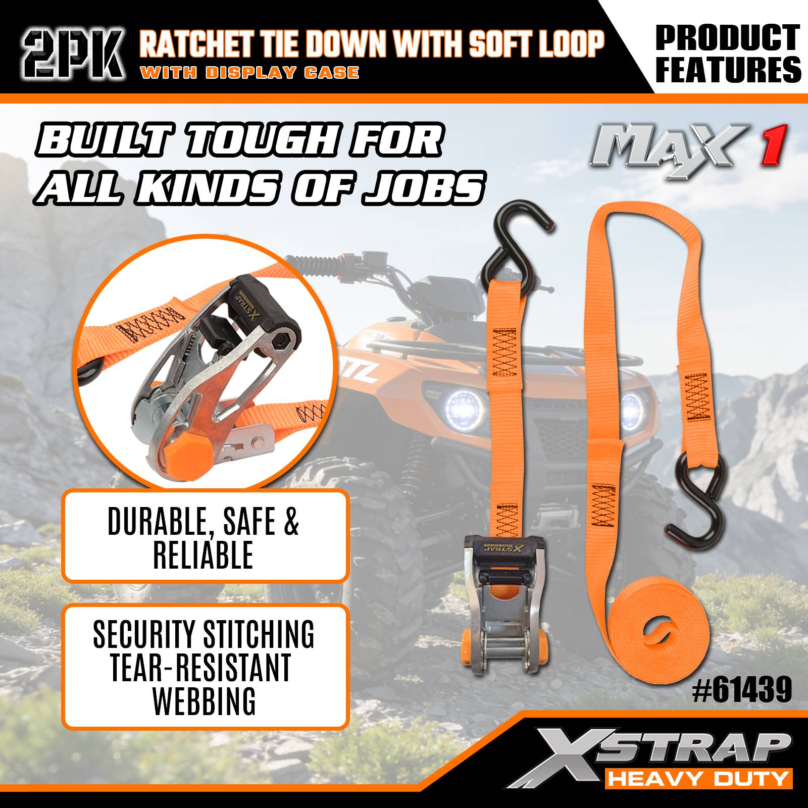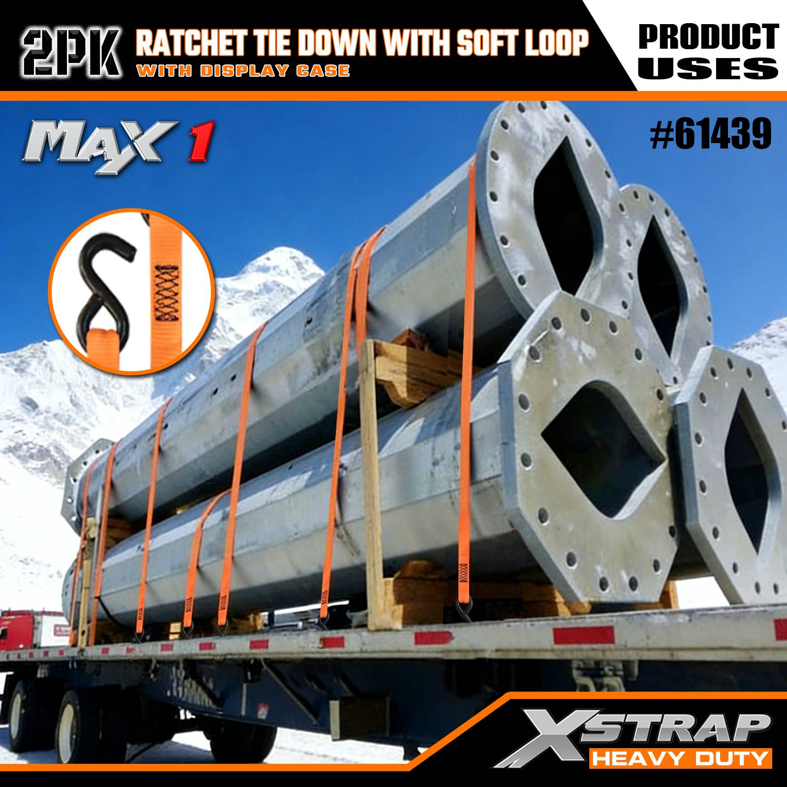 - Praktická kombinace ráčny a měkké smyčky: Dodává se s uživatelsky přívětivým ráčnovým mechanismem spárovaným s měkkými smyčkami, což umožňuje rychlé a těsné zajištění nákladu – nejsou potřeba žádné speciální dovednosti, ideální pro nové i zkušené uživatele.