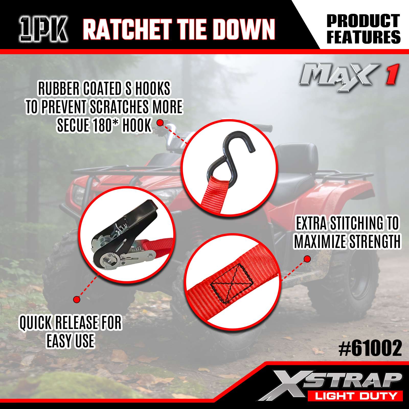 Xstrap 1 Pack Ratchet Upevňovací popruhy, 1" x 10" - 300 lb zátěžový uzávěr - 900 lbs pevnostní-nákladní popruhy pro stěhovací zařízení, vybavení na trávník, motocykl, kamufláž