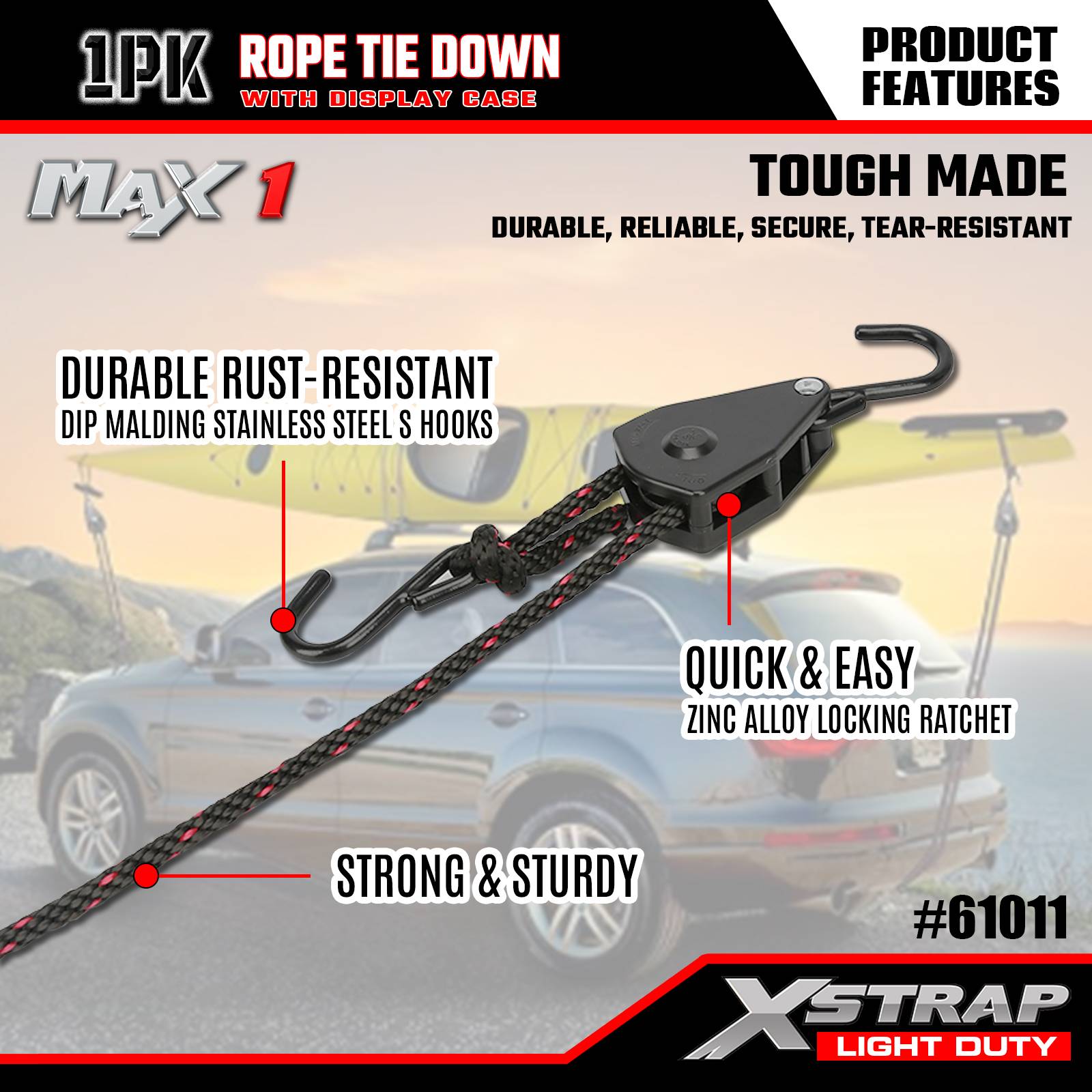 Xstrap 1 Pack Lana Upevňovací popruhy, 3/8” x 8” - 83 Lbs Nosnost – 250 Lbs Pevnostní-nákladní popruhy pro zajištění lehkého nákladu (kajaky, vybavení, malé vybavení) k vozidlům/regálům