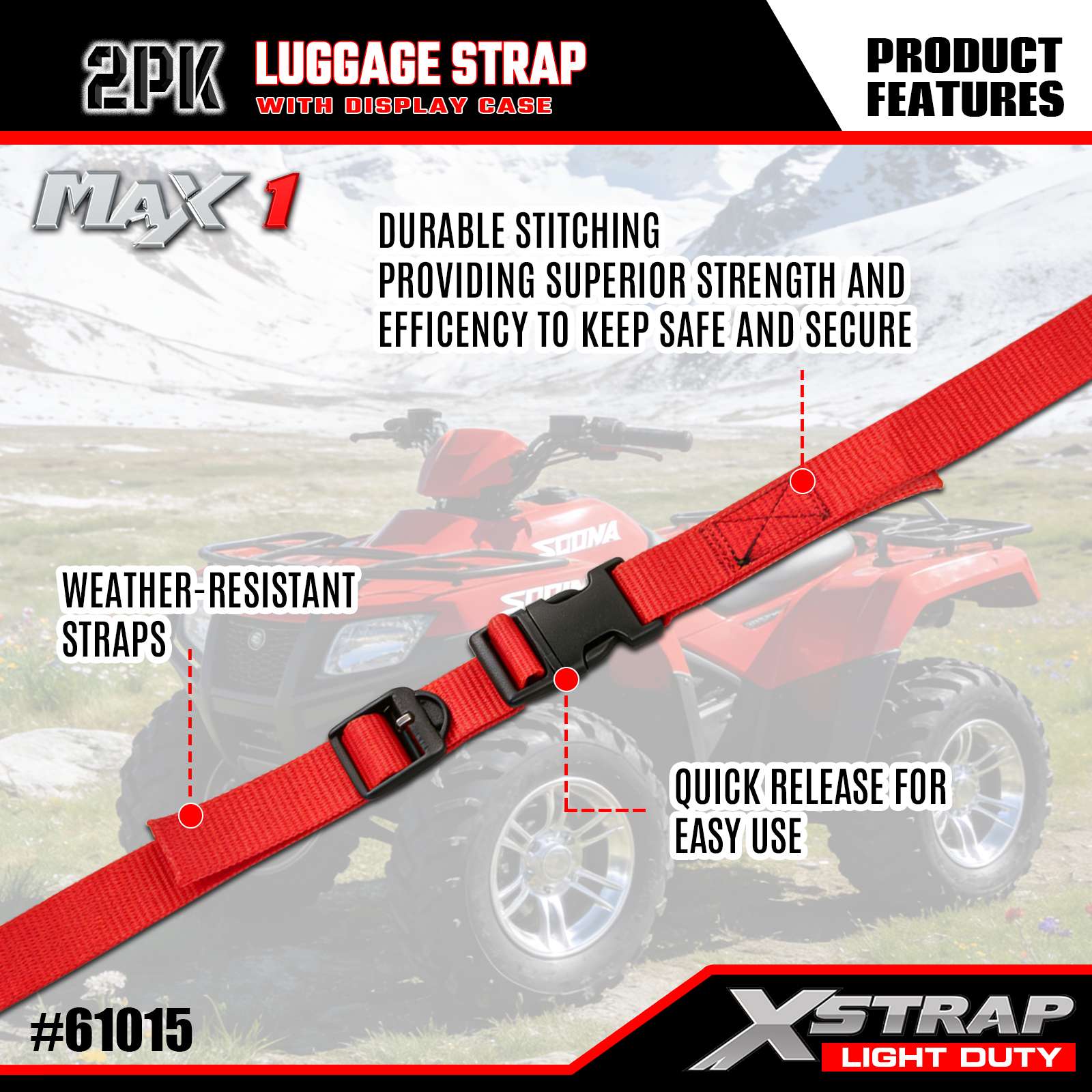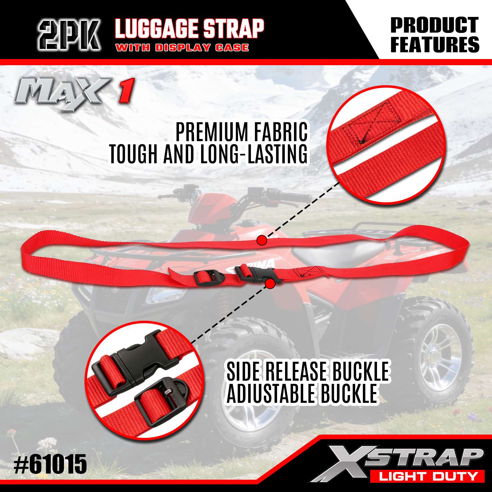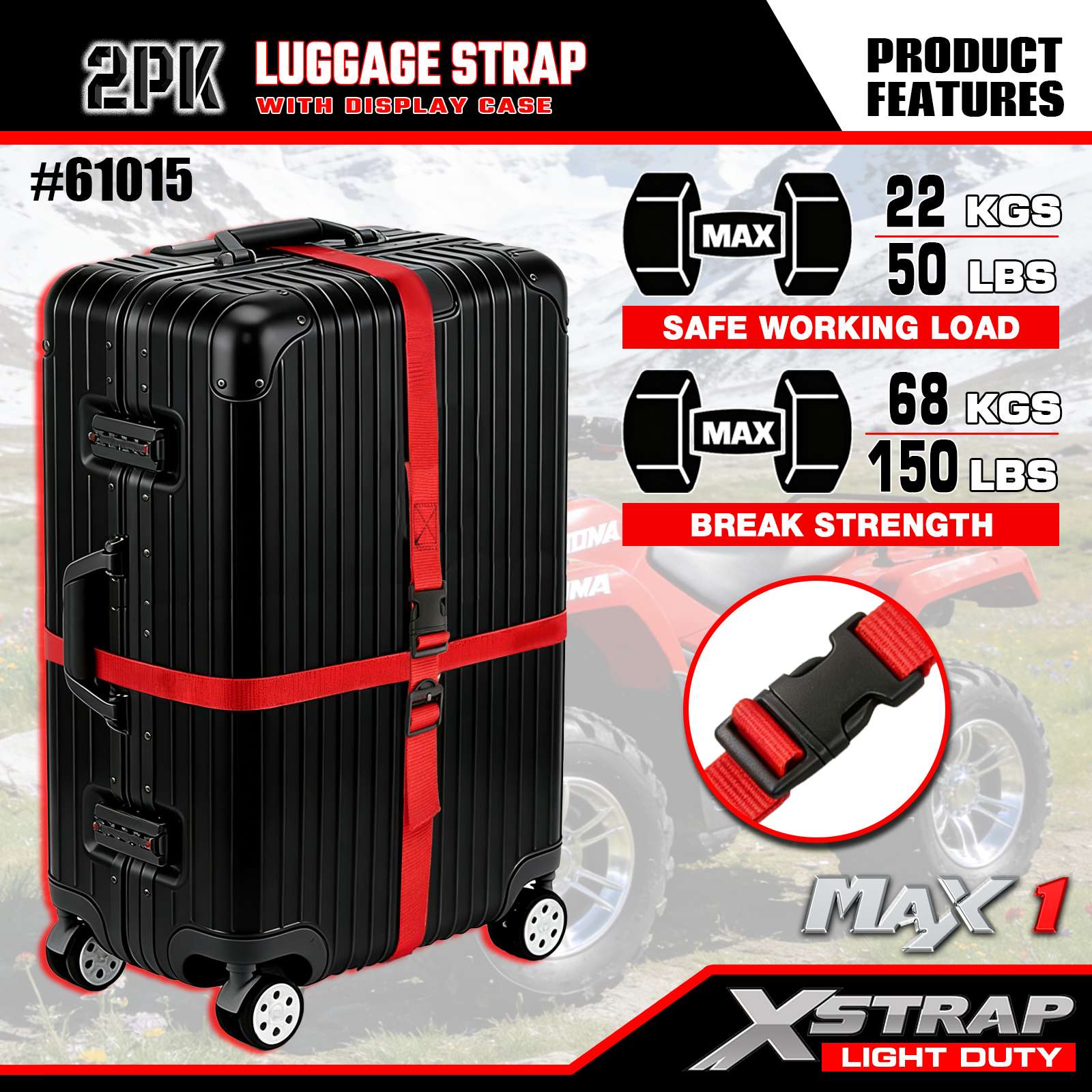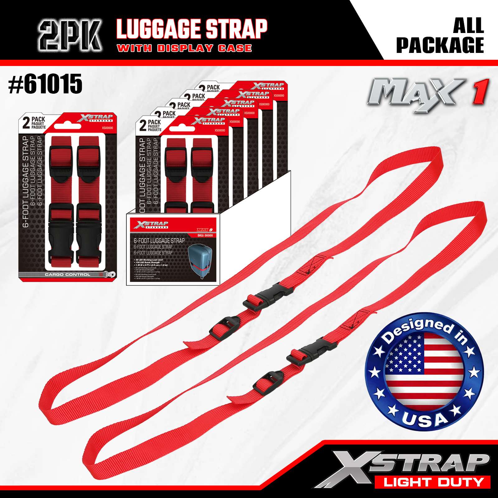 - Kvalita navržená v USA: Navrženo v USA tak, aby splňovalo přísné normy odolnosti a zajistilo konzistentní výkon pro lehké úkoly při zajišťování zavazadel.