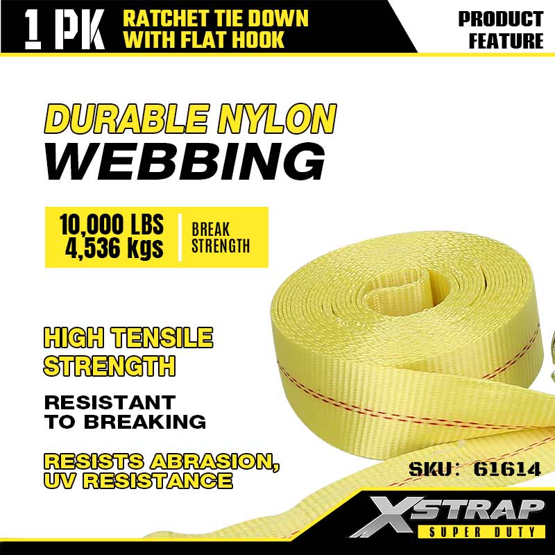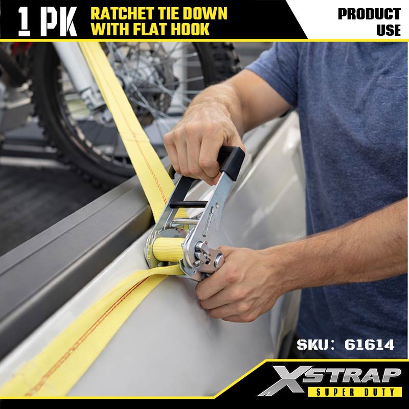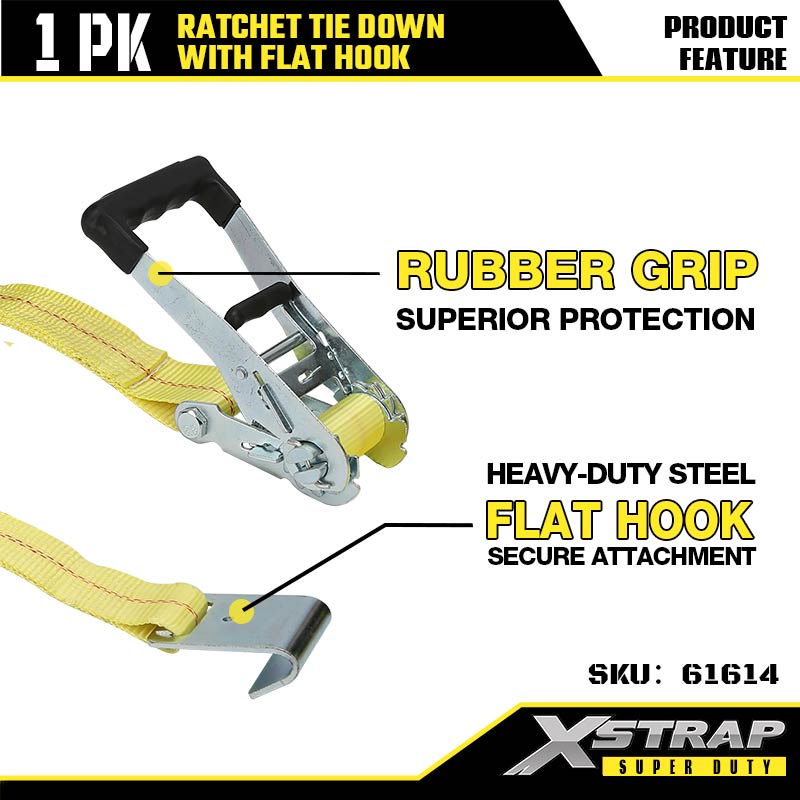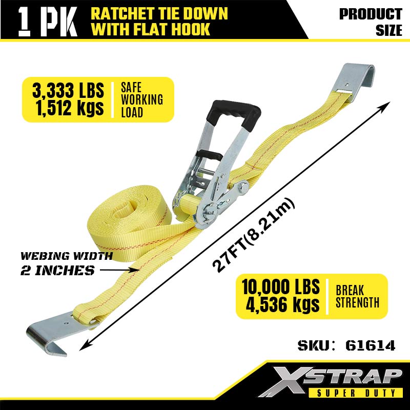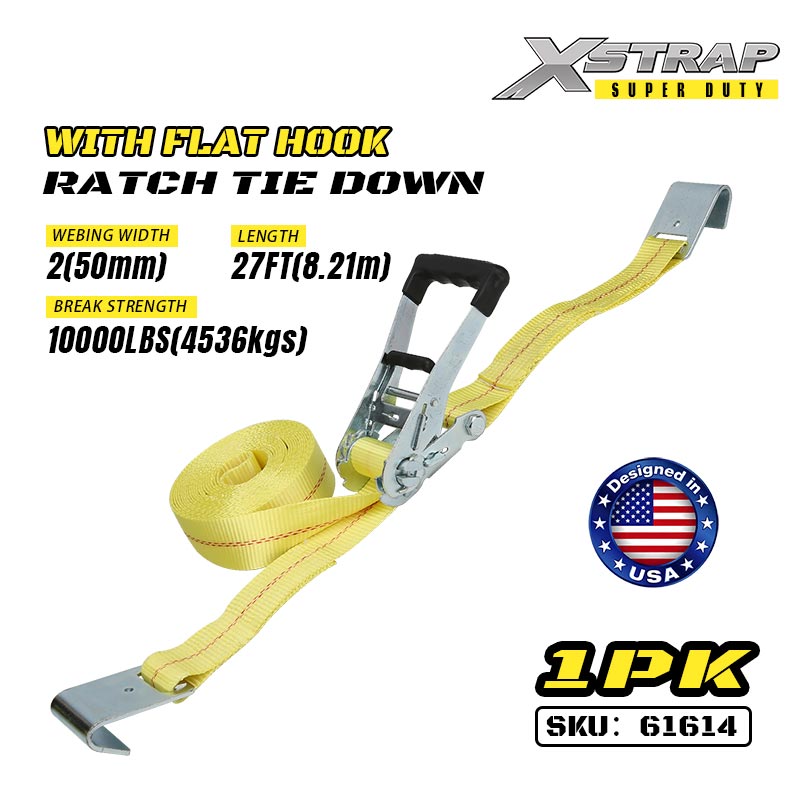 Xstrap Ratcet Upevňovací popruhy s plochými háčky, 2” x 27” Polyesterový upínací popruh Ratch strap, Nosnost 3333 lbs Nosné popruhy pro zajištění nákladu s plochými háčky pro těžký přívěs, lyžařský člun s plochým ložem, malé auto, těžké vybavení.
