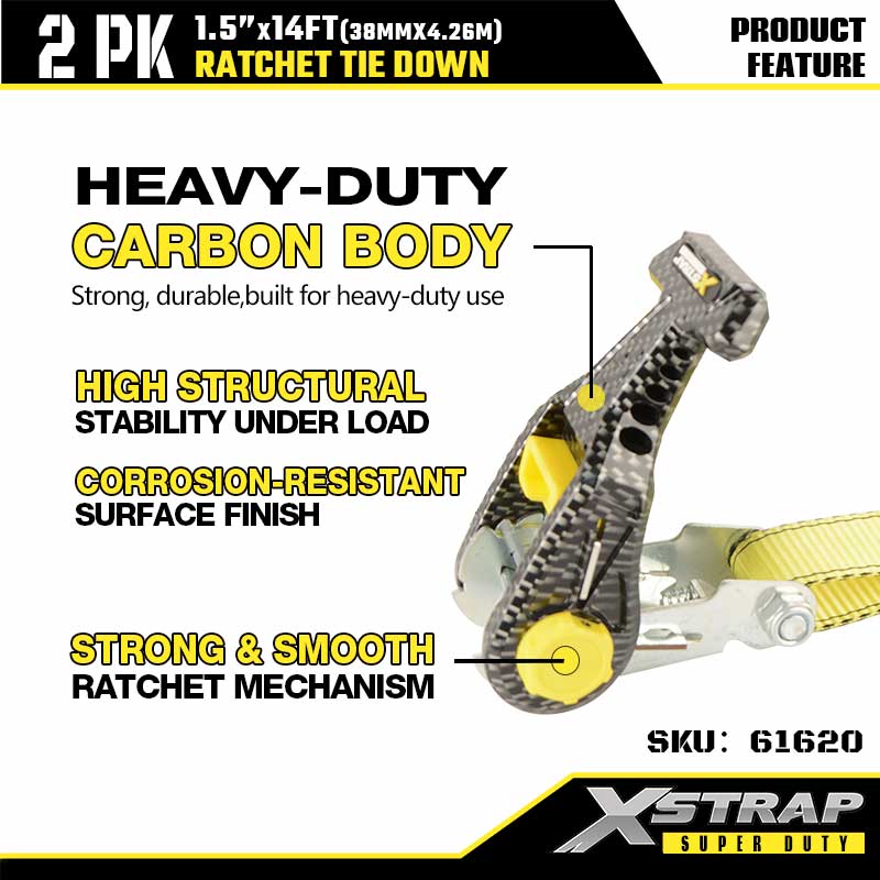 - Plynulé ovládání ráčny z uhlíkových vláken: Přeskočte neohrabané kovové ráčny. Tělo z uhlíkových vláken je pevné a přitom lehké a hladký mechanismus vám umožní napnout a uzamknout těžký náklad během několika sekund jednou rukou. Dokonce i první uživatelé mohou získat pevné stabilní držení bez dalších nástrojů.